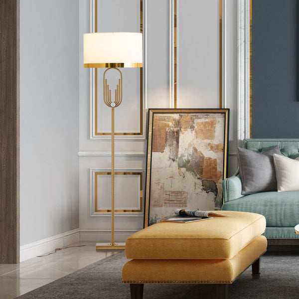 Lámpara de pie moderna de metal redonda de tela de 1 luz de mediados de siglo para sala de estar
