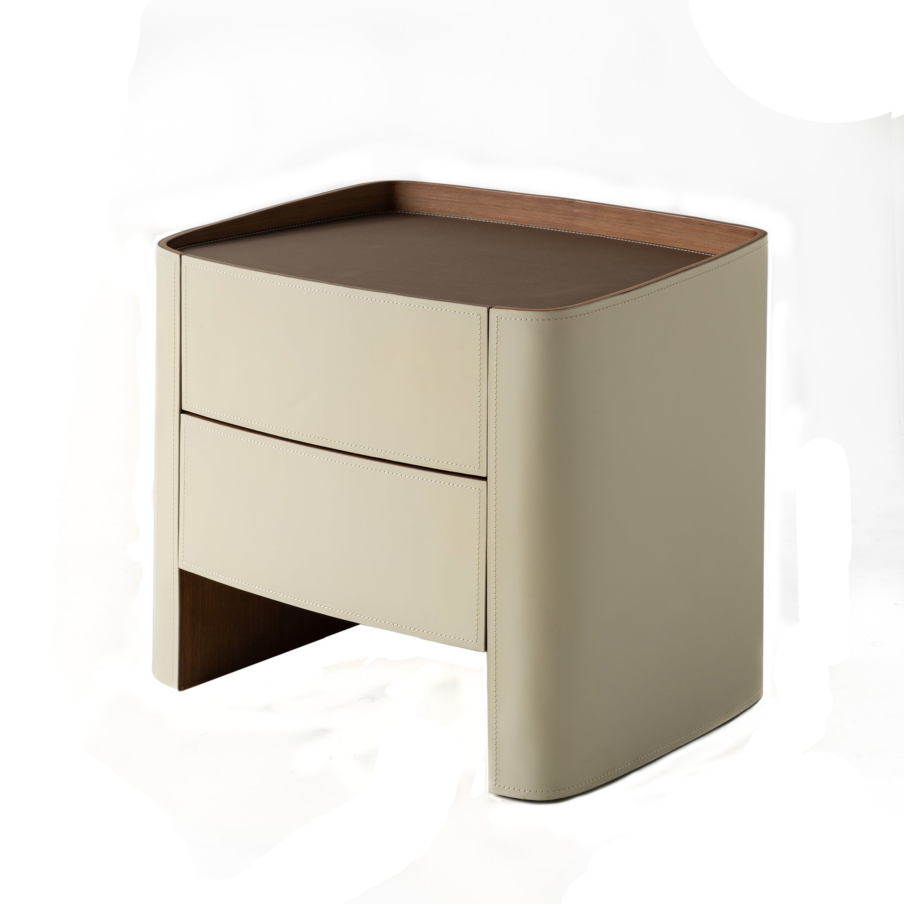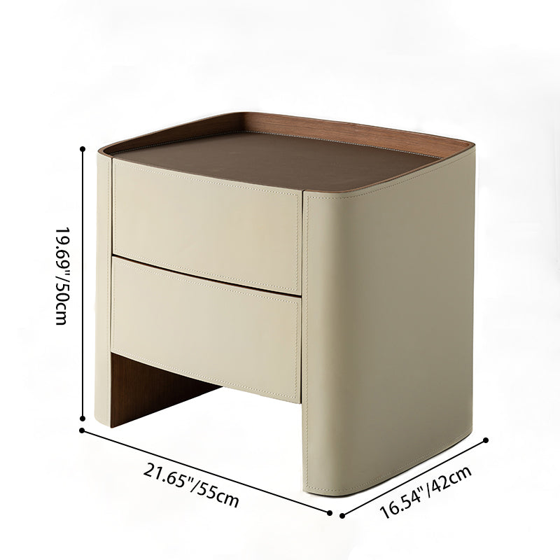 Elevate your bedroom with this modern luxury floating nightstand, where a clean square silhouette and minimalist lines converge to create a sleek, sophisticated presence. Expertly crafted with eco-friendly white MDF and topped with a rich walnut finish, it offers a striking contrast that masterfully blends organic warmth with contemporary style. The dual drawers—wrapped in premium soft-touch saddle leather—provide a tactile, high-end storage experience for your essentials, while the spacious tabletop and open lower shelf maximize display and organizational space. This piece is the definitive accent for modern, minimalist, or urban apartment bedrooms seeking a seamless fusion of architectural form and functional luxury.