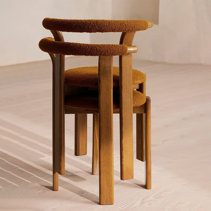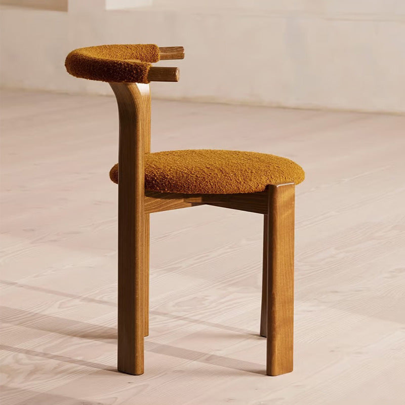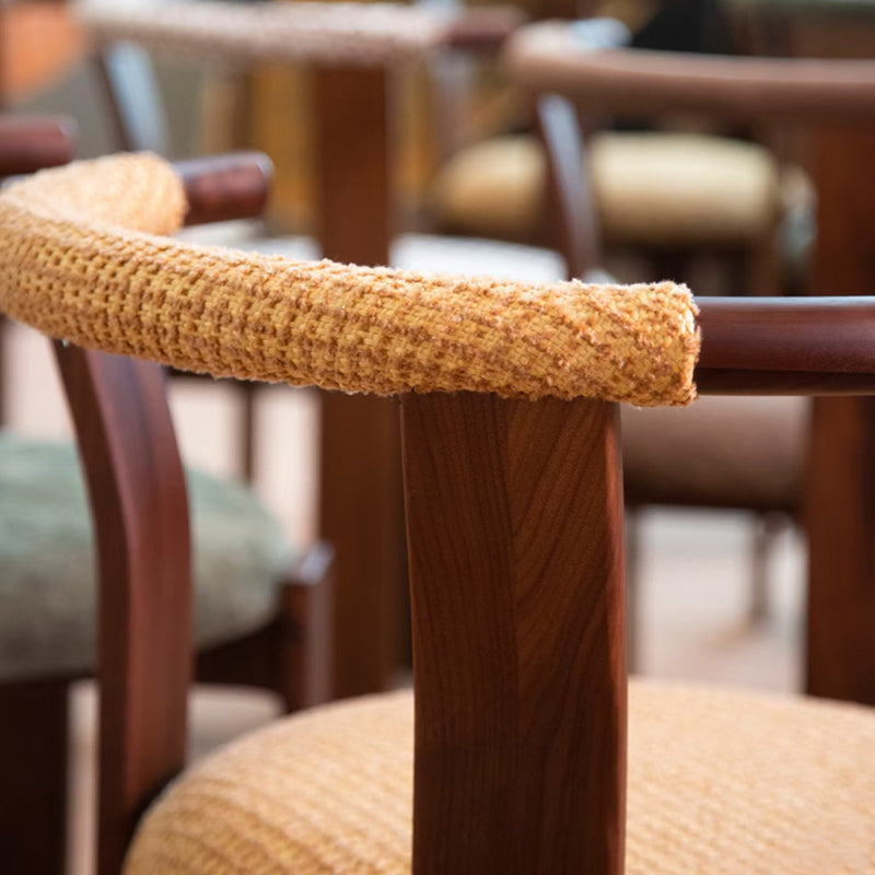 This Traditional Chinese dining chair pairs a solid ash wood frame with breathable cotton-linen upholstery, featuring a soft curved silhouette and cylindrical structure with a supportive backrest. Available in walnut, orange, white, and white-gray, it’s filled with high-resilience foam that resists sagging, offering lasting comfort and refined designer style for living and dining spaces.