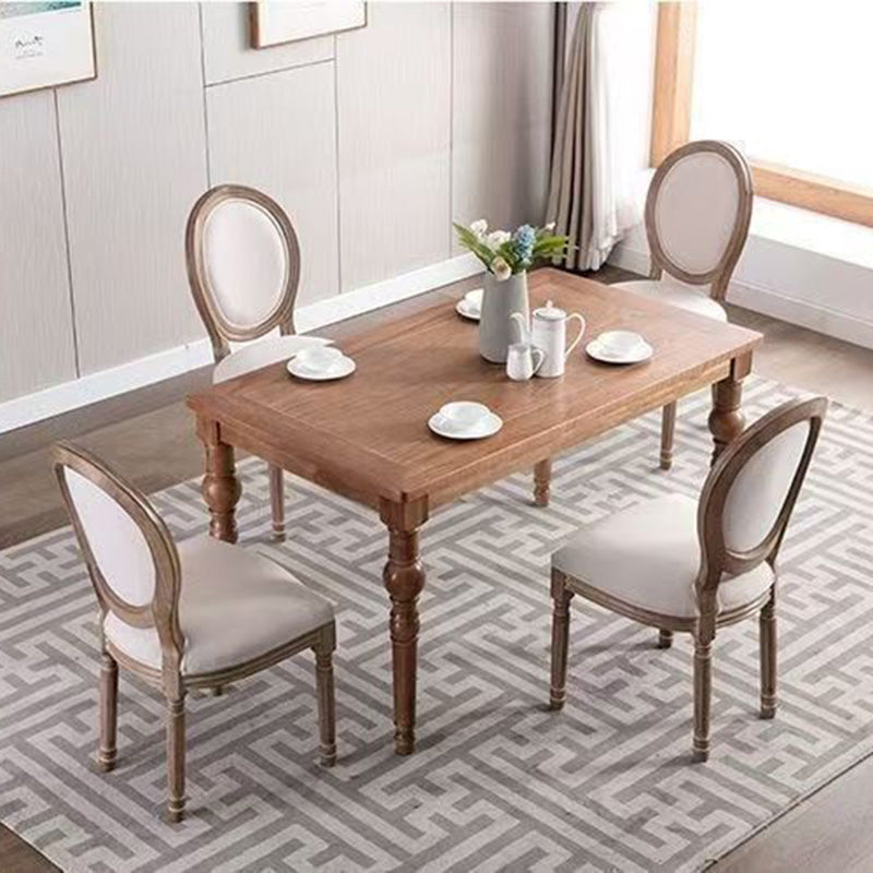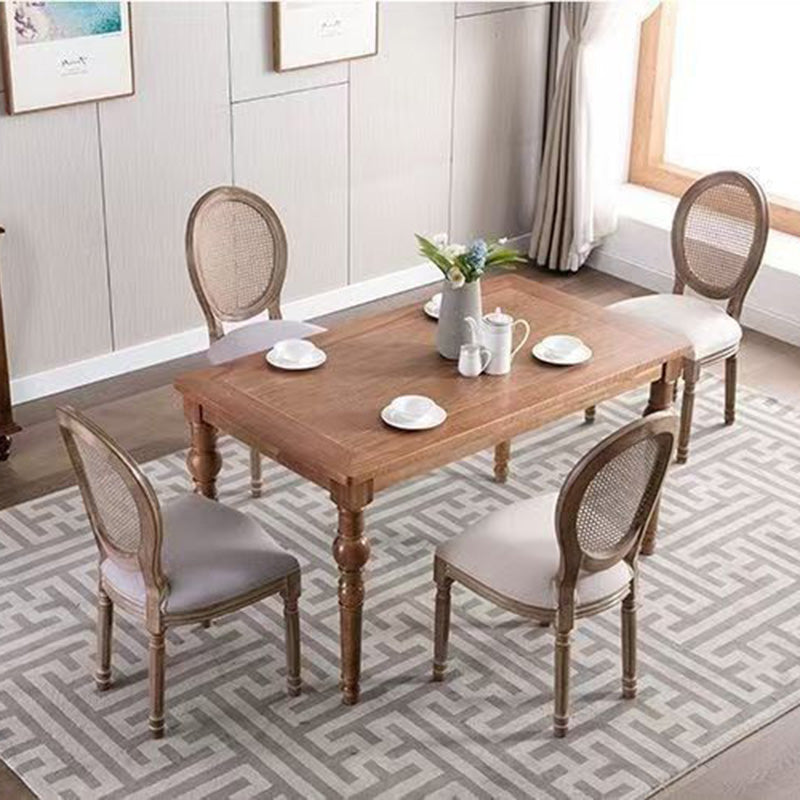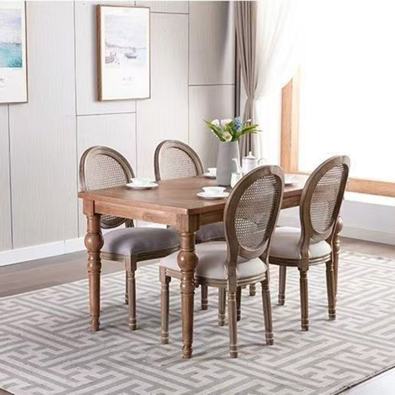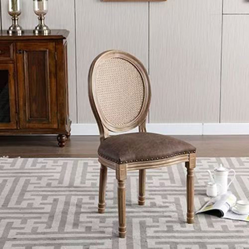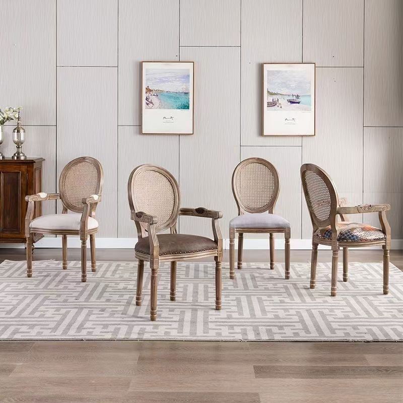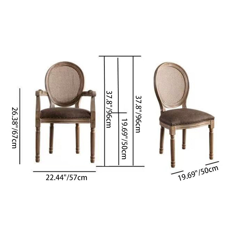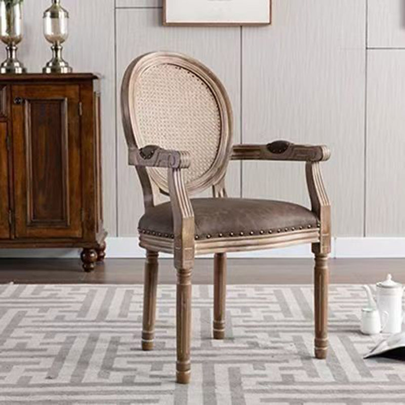 Traditional French Rubberwood PU Leather Velvet Oval Curved Dining Chair With Armrests Backrest For Dining Room
