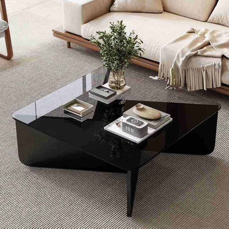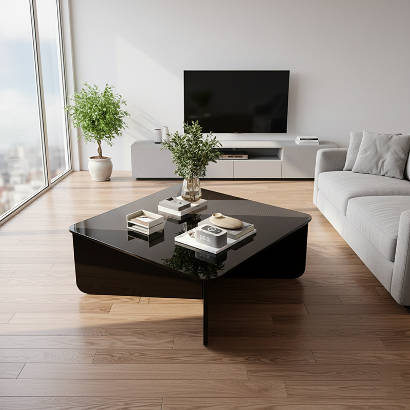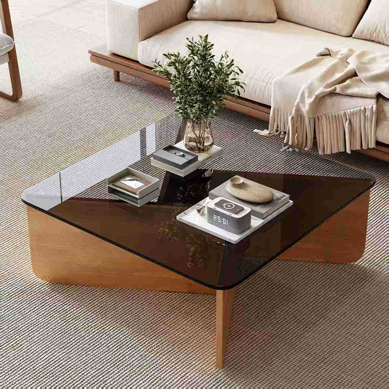 This modern minimalist square coffee table combines durable tempered glass with solid wood plywood for a strong, stable surface that’s resistant to breakage and built for everyday use. Available in walnut, natural wood, or black, it’s an ideal space-saving coffee table for contemporary living rooms and small apartments.