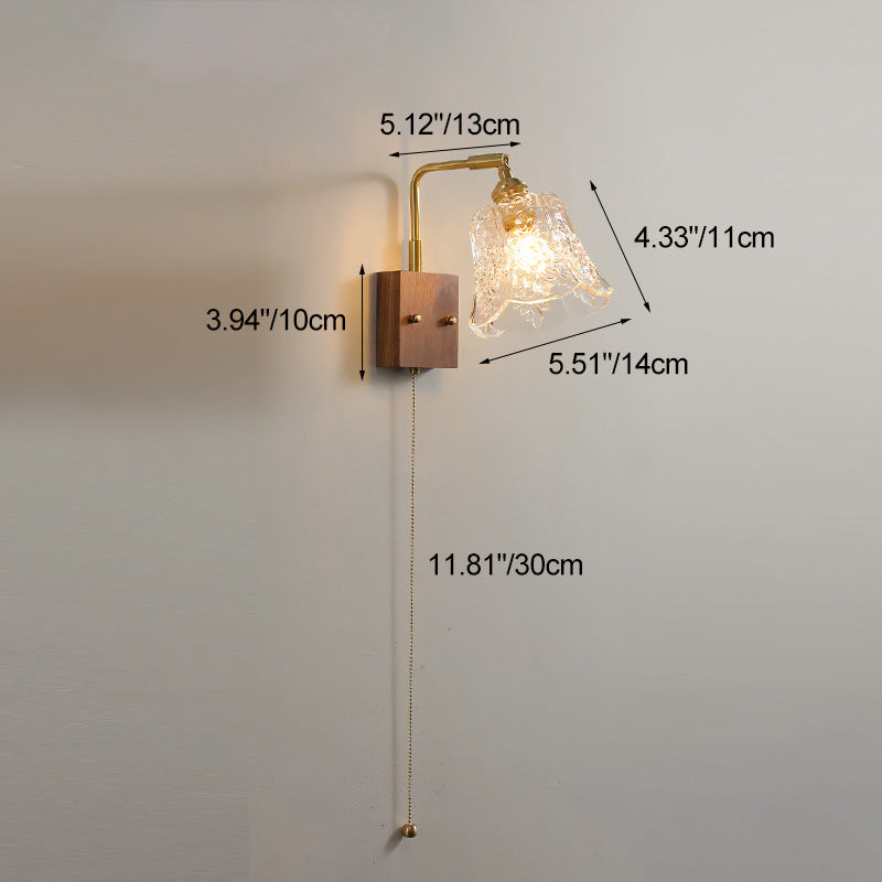 Eleva tu interior con este aplique de pared vintage que presenta una pantalla de vidrio transparente con textura de rosa, marco de latón puro y base de madera de nogal. Con un ángulo ajustable y diseño LED de 1 luz, es ideal para dormitorios acogedores o salas de estar sofisticadas.