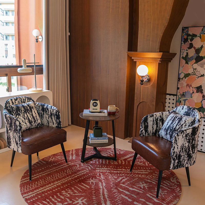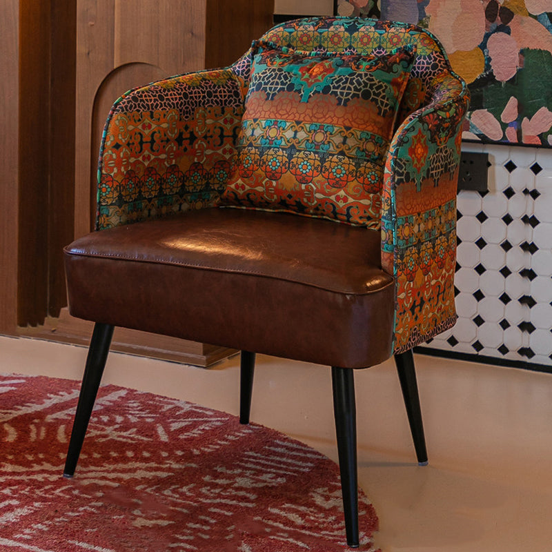 Blending timeless character with industrial-strength construction, this vintage waxed leather armchair is engineered for both style and heavy-duty commercial use. The design features a supportive backrest and integrated armrests, uniquely accented with printed fabric for a distinctive aesthetic touch. Built upon a robust solid wood and iron frame, the seat is cushioned with high-resilience foam to provide lasting comfort in high-traffic environments.