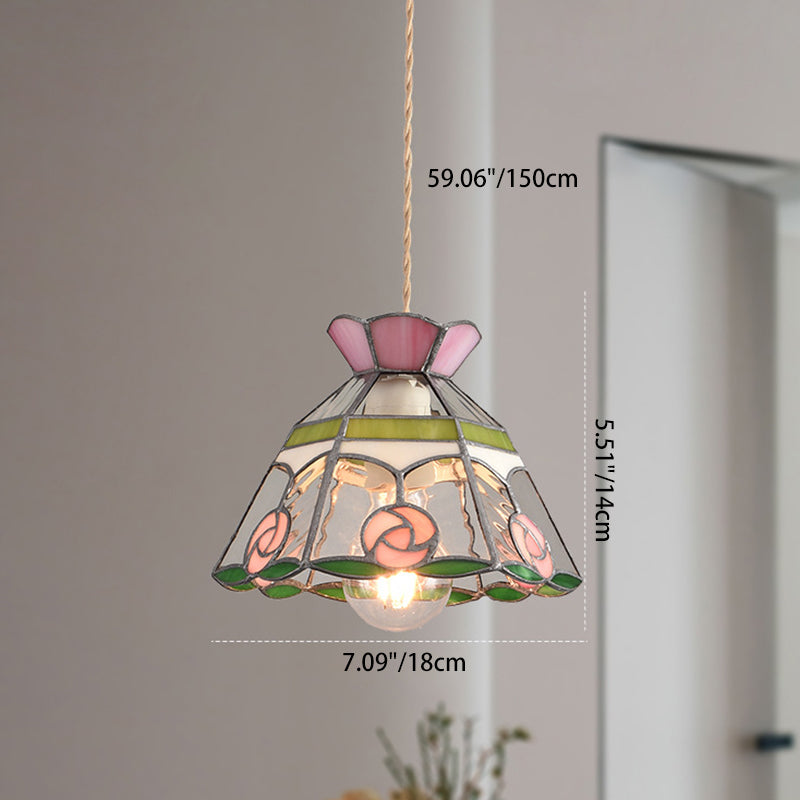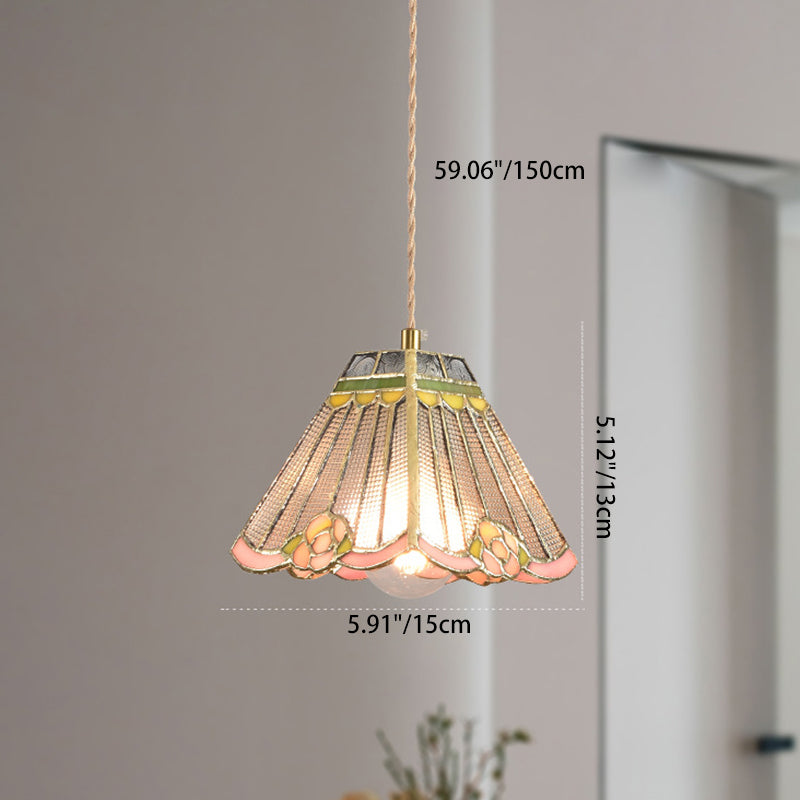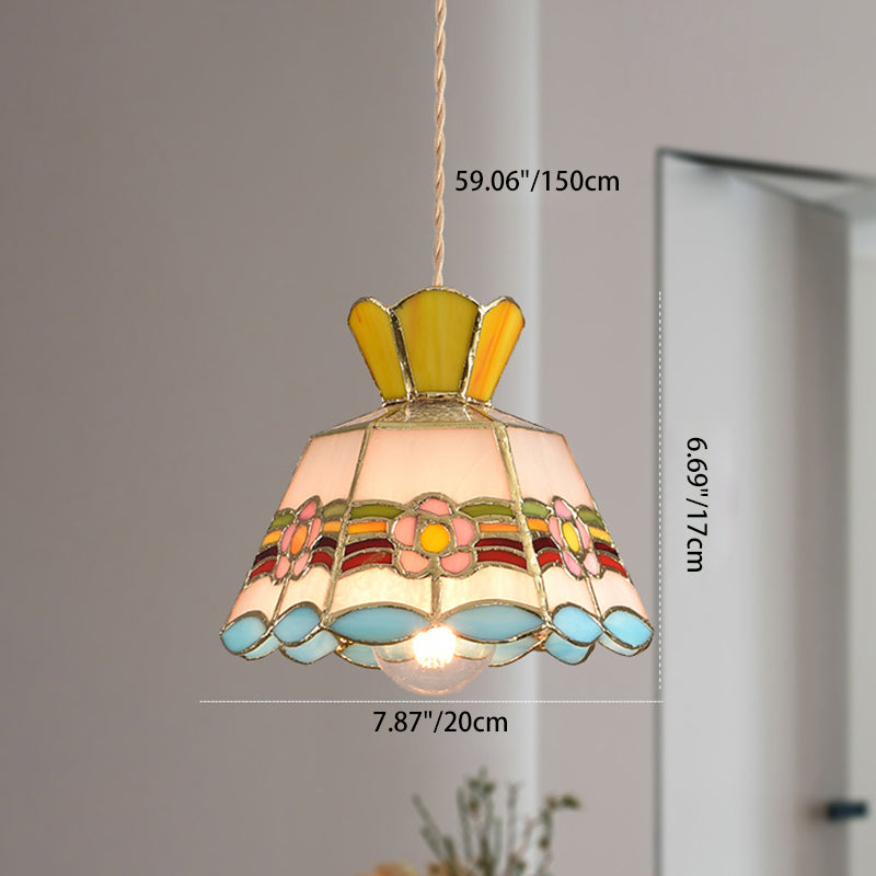 Añade un encanto atemporal a tu espacio con esta lámpara colgante vintage tradicional que presenta vidrio de colores soldados a mano en un diseño cónico de diamante vibrante. Hecha de hierro y vidrio, incluye un cordón colgante ajustable y es ideal para dormitorios, comedores o cafeterías acogedoras.
