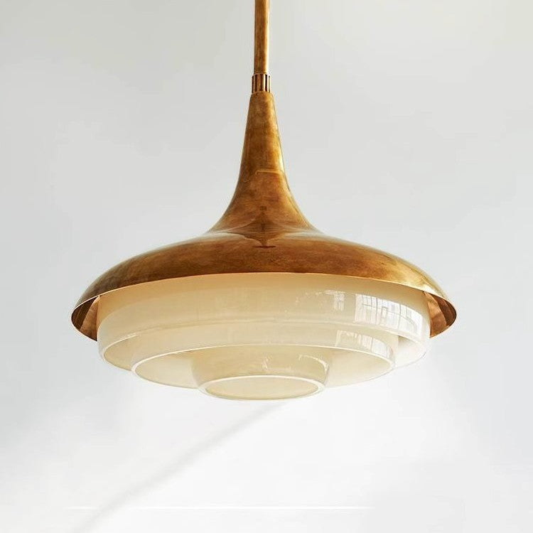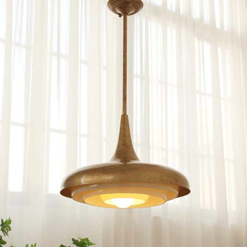 Esta lámpara colgante de estilo vintage presenta un acabado de cobre cálido y una pantalla de vidrio de jade falso que difunde una luz suave y ambiental. Con una bombilla principal y una tira de LED incorporada, es un elegante acento para dormitorios, áreas de comedor o espacios de estar.