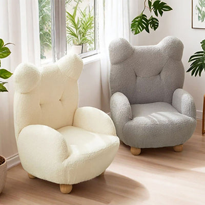 Modern Art Deco Lambswool Solid Wood Bear-Shaped Accent Chair With Armrests & Backrest For Living Room