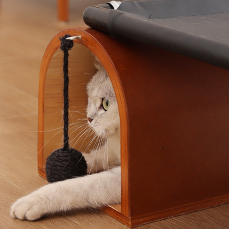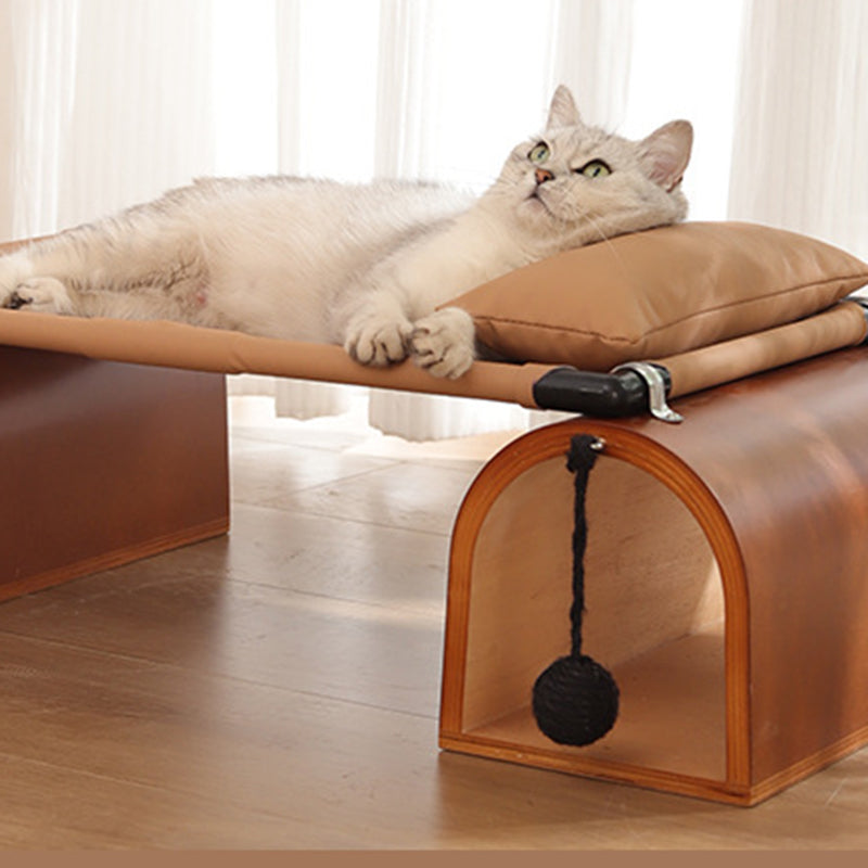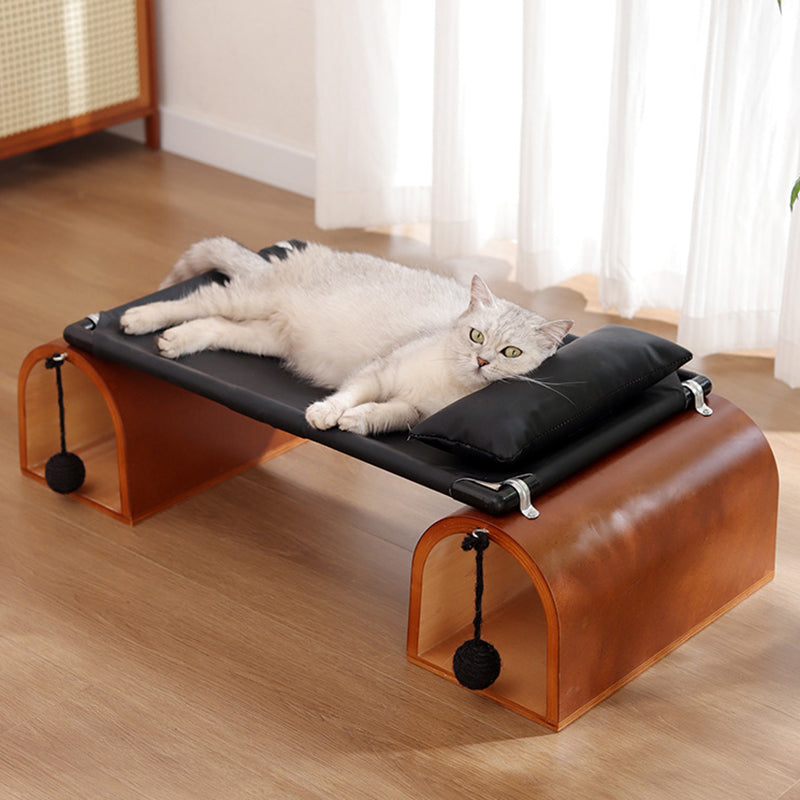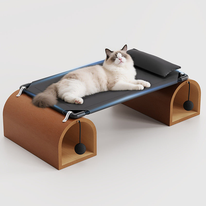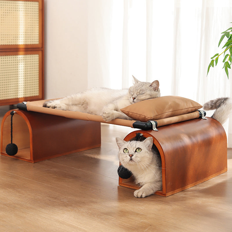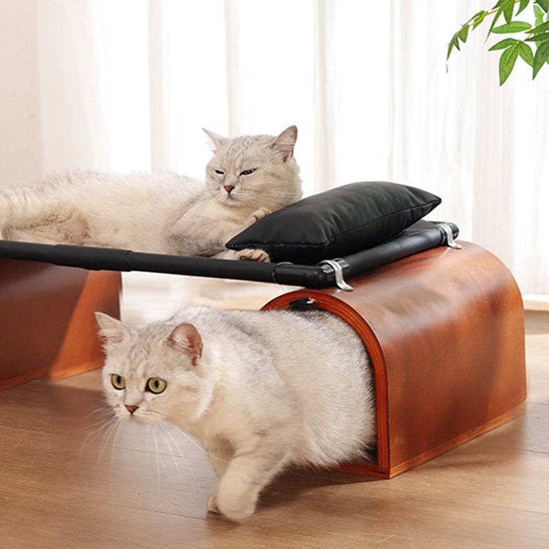 This Art Deco bridge-shaped tunnel cat bed (also a cot) is made of multi-layer board, iron and tech fabric, coming in coffee and black. It’s 1-tier, scratch-resistant and sturdy, with detachable washable design, portable storage and year-round use—perfect for cats and small dogs in the living room or bedroom.