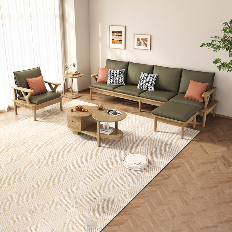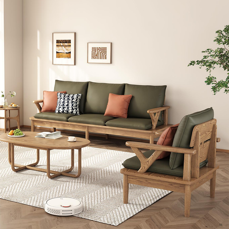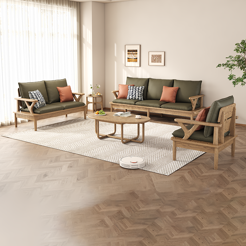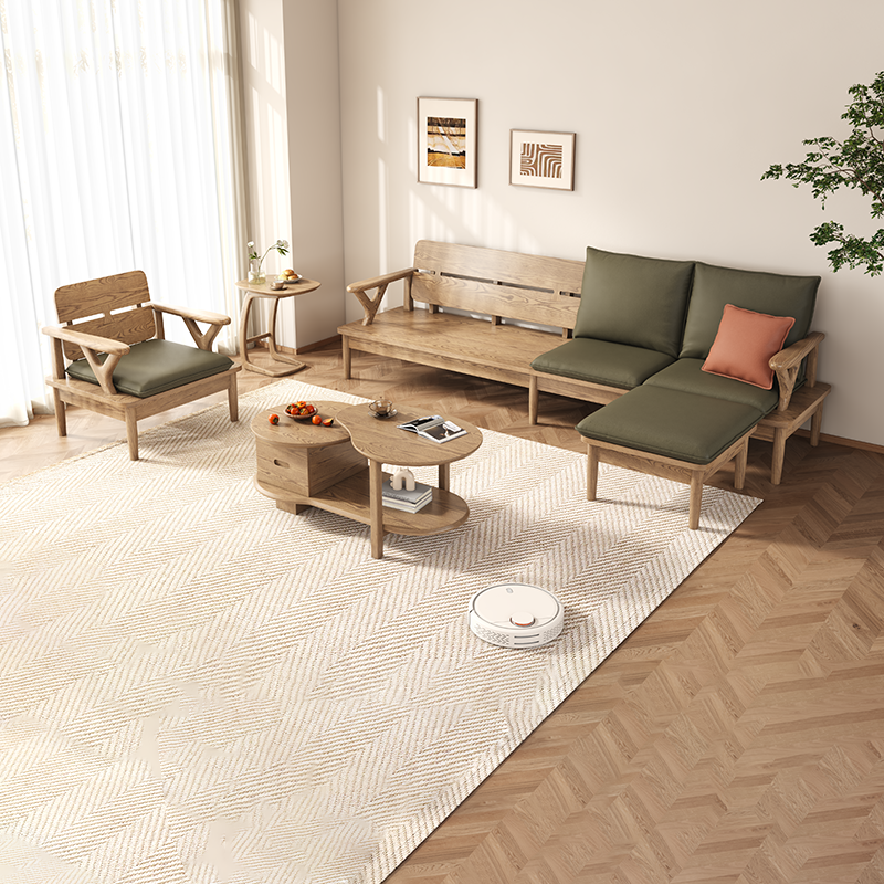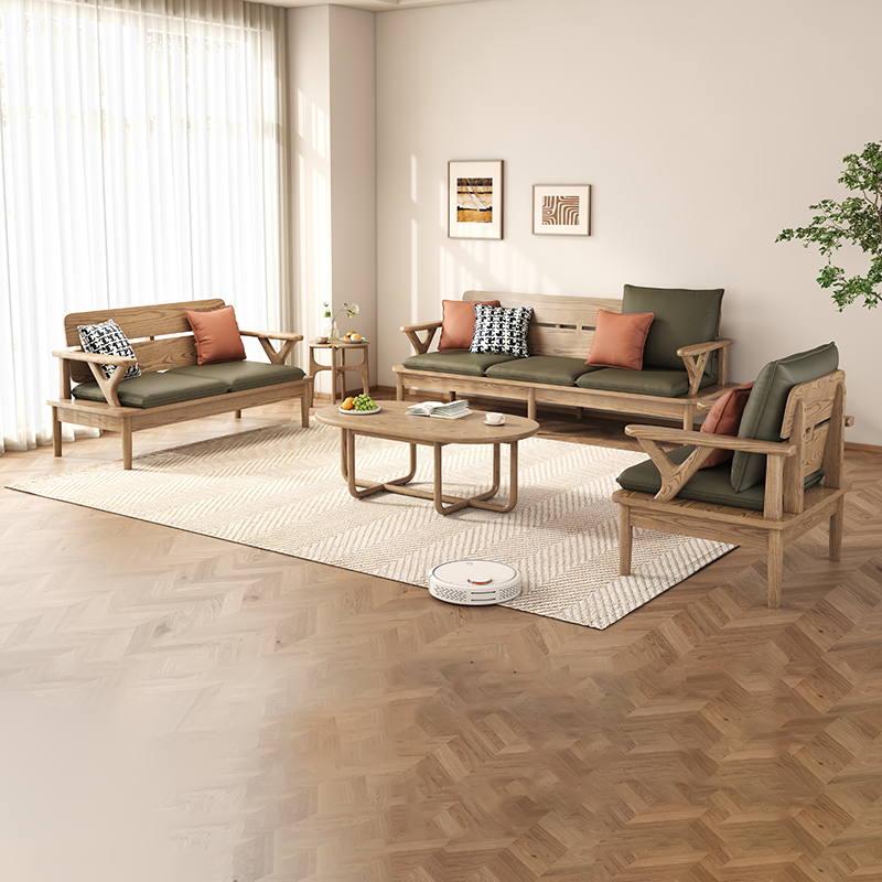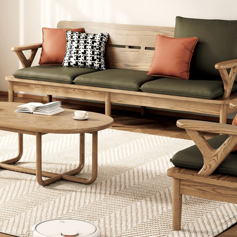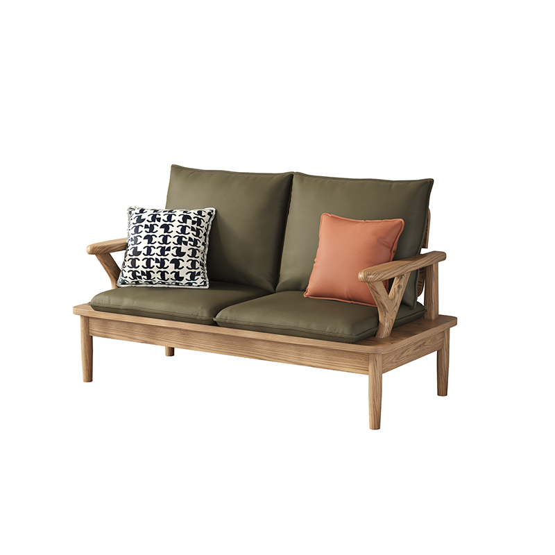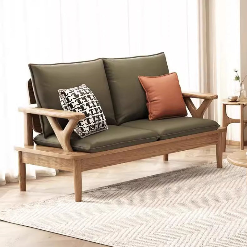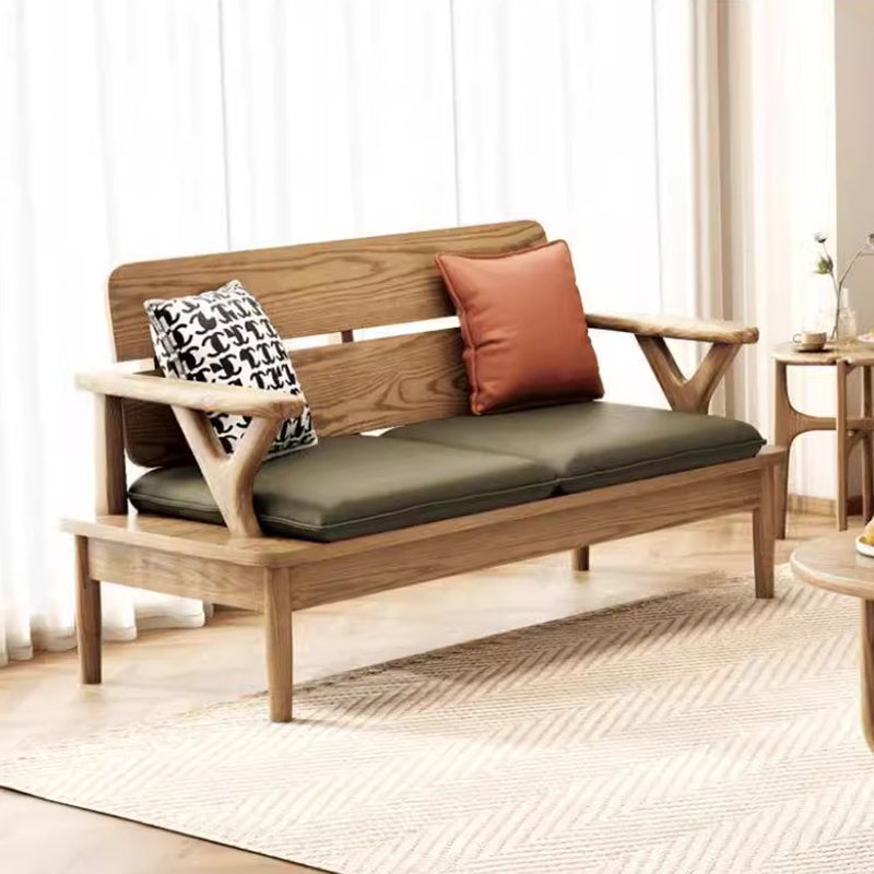 Experience the warmth of natural wood with this solid ash wood sofa, crafted from premium North American ash in a Light Walnut finish. Its clean geometric frame, sculpted armrests, and breathable cushions create a harmonious blend of structure and softness. High-resilience foam and down-filled back cushions offer exceptional comfort, while hidden drawer storage delivers practical convenience.