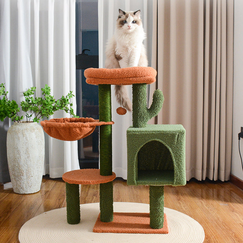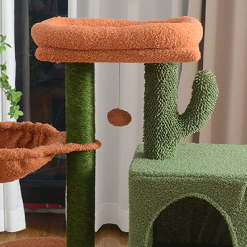 Bring a burst of personality to your home with this contemporary creative 3-tier cat tree, featuring a vibrant and playful cactus-inspired design. Perfectly balancing "Boho-chic" style with feline functionality, this tower is anchored by a compact square footprint that fits effortlessly into corners or small-space apartments. Crafted from sturdy engineered wood and finished in a trend-forward warm camel and cactus green palette, it serves as a "living room statement piece" that replaces unsightly traditional cat furniture with a pop of desert-inspired charm.