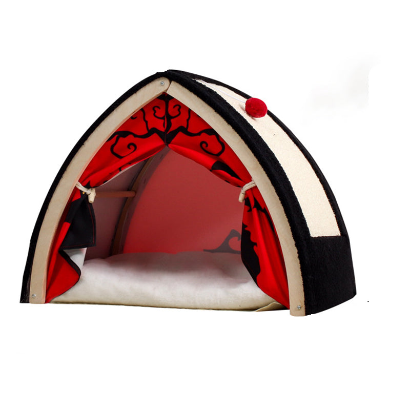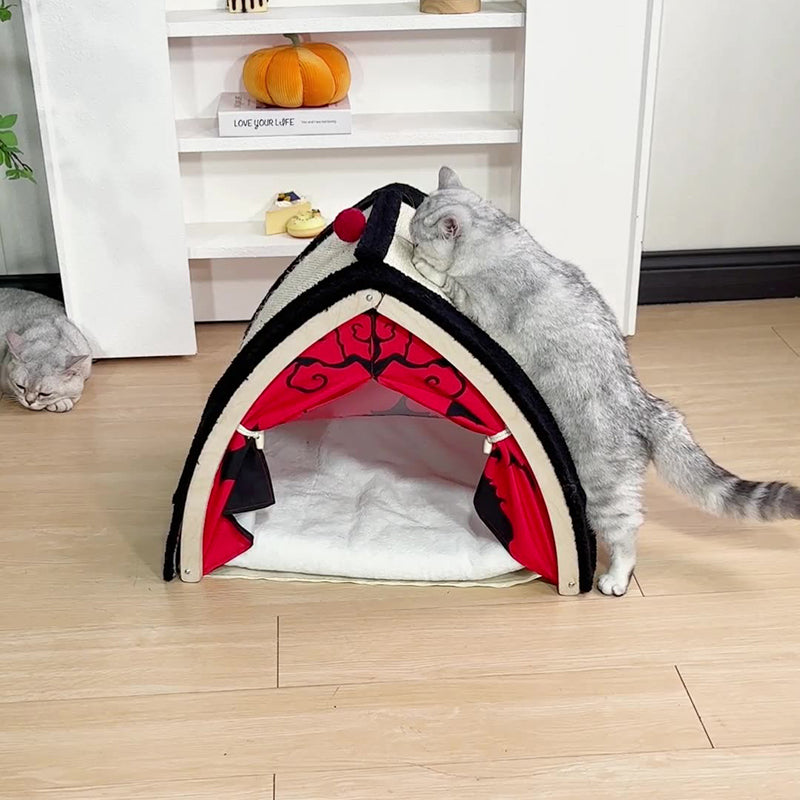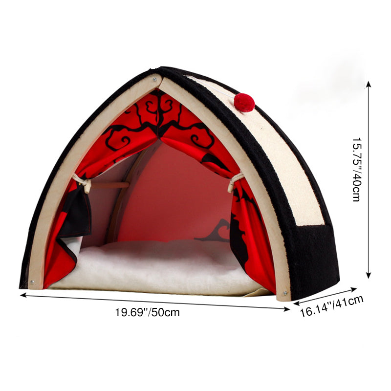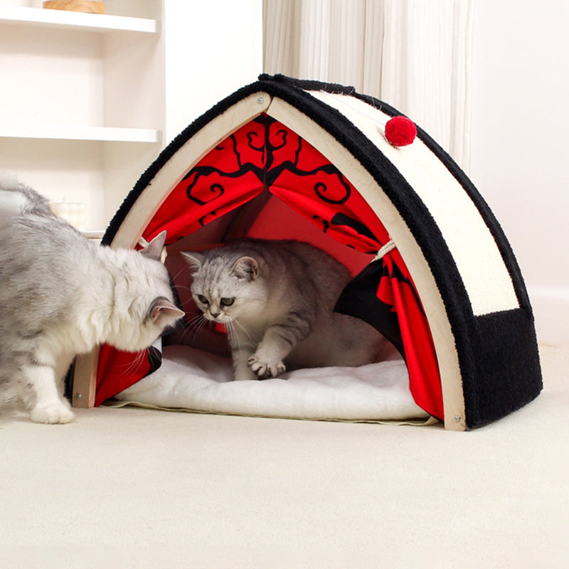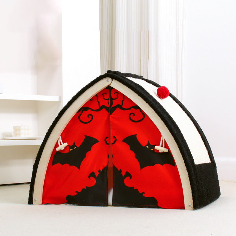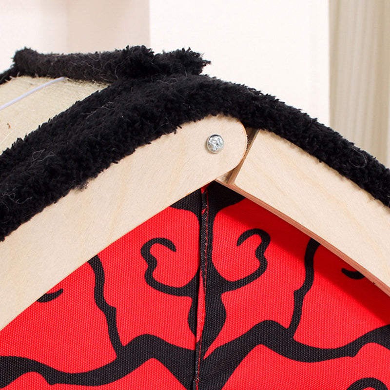 Make a bold statement in your home with this contemporary creative triangular cat tent bed, featuring a striking Halloween-inspired design in high-contrast black and red. More than just a pet bed, this "modern-gothic" sanctuary is built on a sturdy wood panel frame that offers far more stability than traditional fabric tents. The unique A-frame silhouette provides a secure, "den-like" environment that satisfies your cat’s natural desire for a private hideaway, making it a "playful accent piece" that stands out in any living room or bedroom.