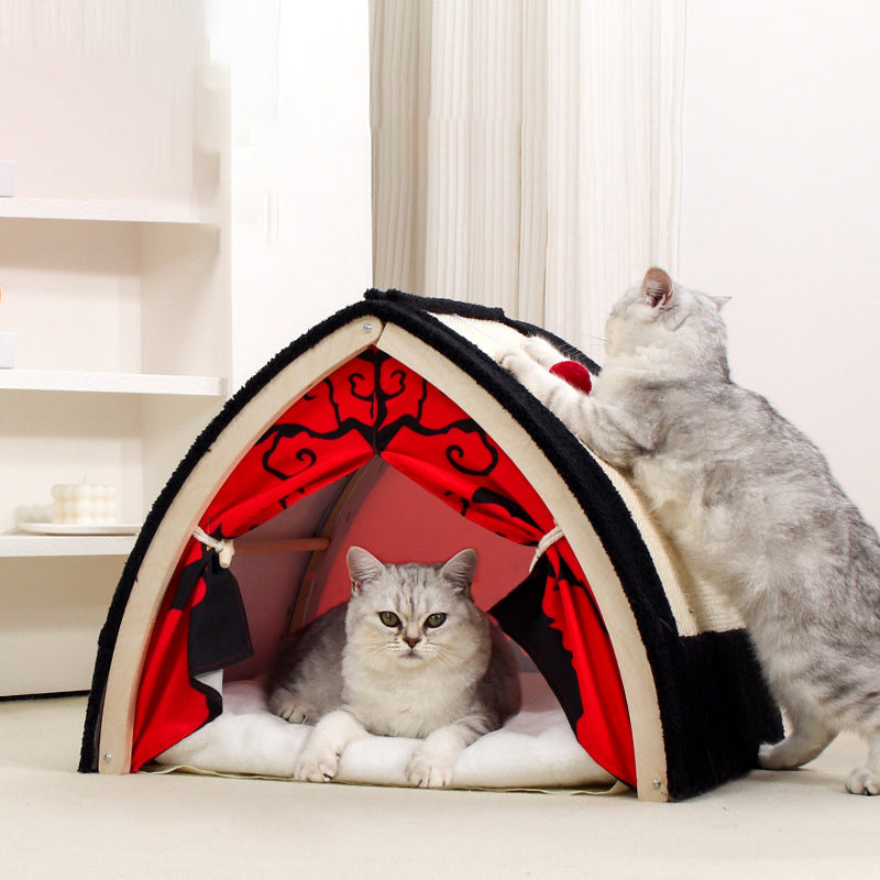 Designed for the "smart-space" home, this multifunctional tent features an innovative foldable structure, allowing for easy storage or travel without sacrificing durability. The exterior peak is capped with a heavy-duty sisal scratching top, perfectly positioned for a satisfying full-body stretch and claw-sharpening session. Inside, ultra-soft plush fabric ensures a cozy retreat, while the breathable open-front design makes it a "cool and comfortable" choice for all-season use. Optimized for North American consumers searching for modern triangle cat tents, Halloween cat furniture, foldable wooden cat beds, and A-frame cat scratchers.