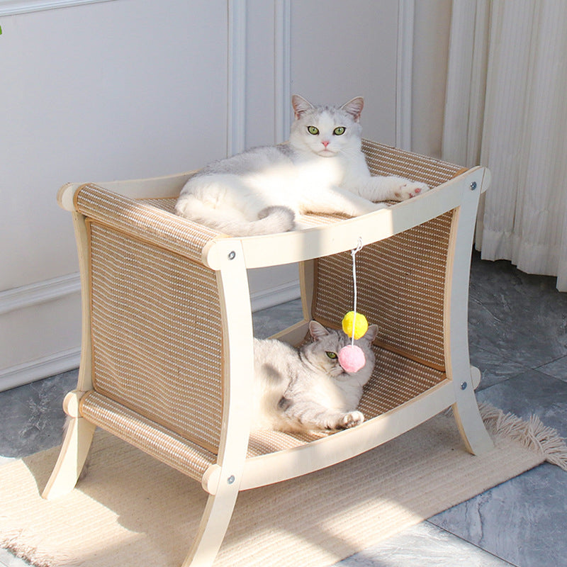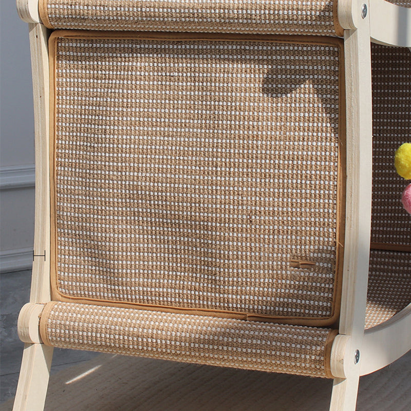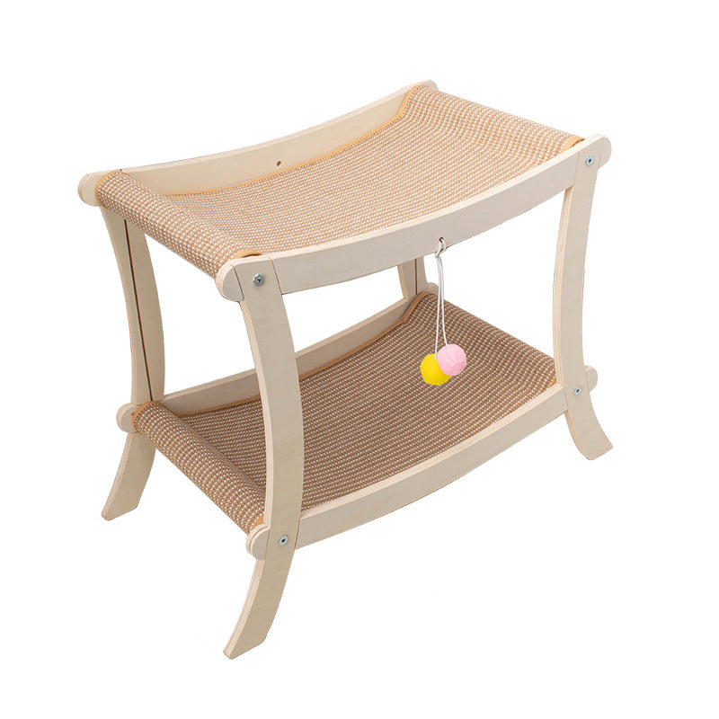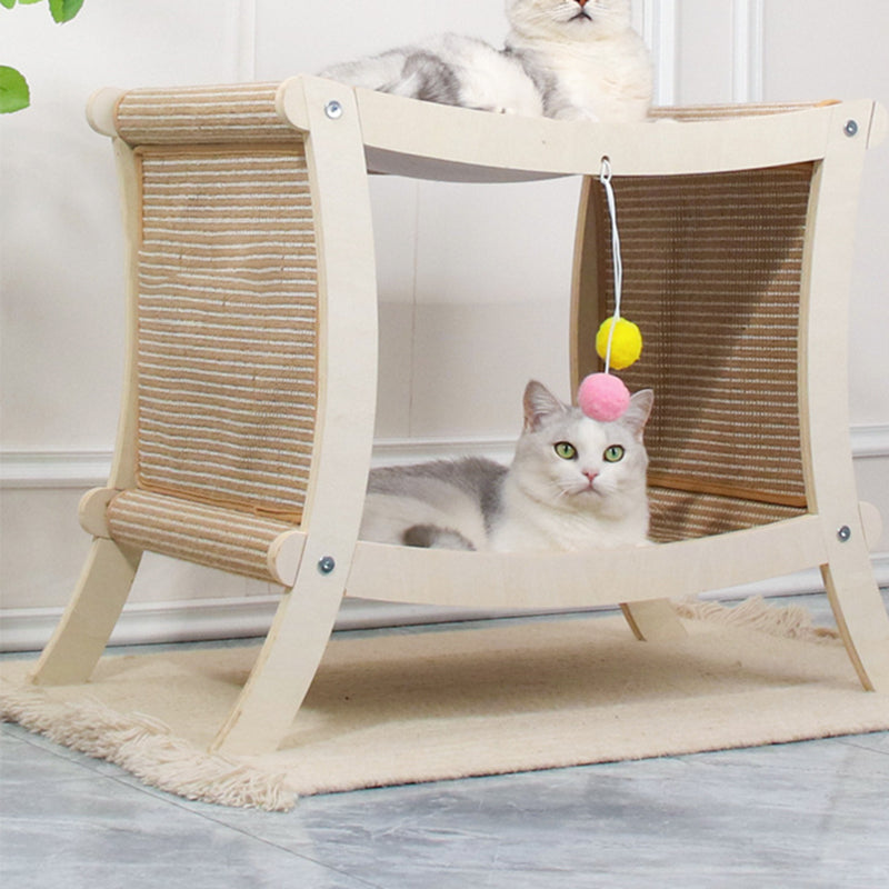 Contemporary Scandinavian Rectangular Multi-Layer Solid Wood Panel Jute Double-Layer Cat Bed For Bedroom