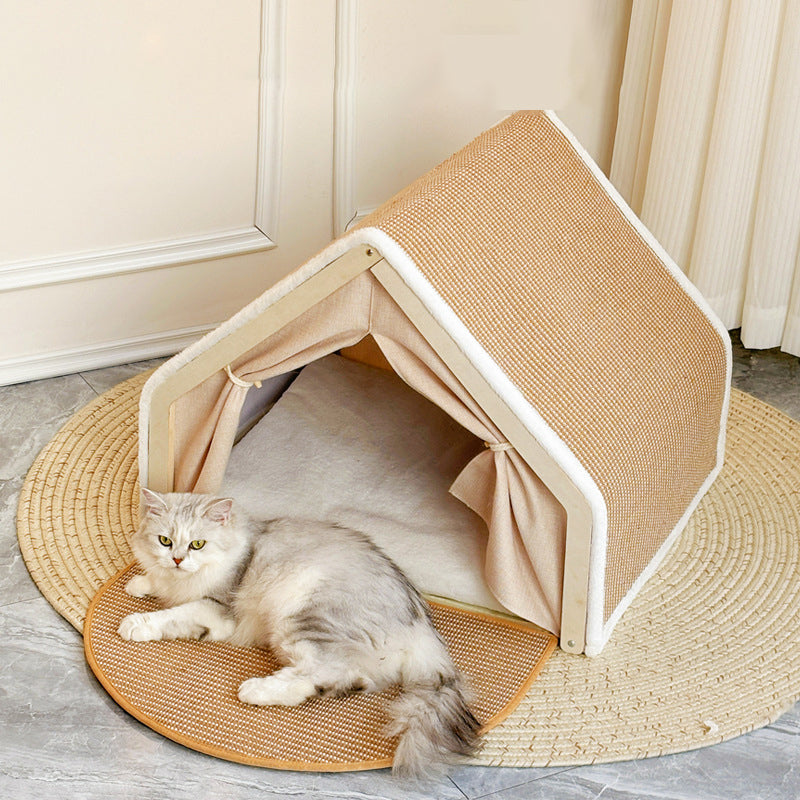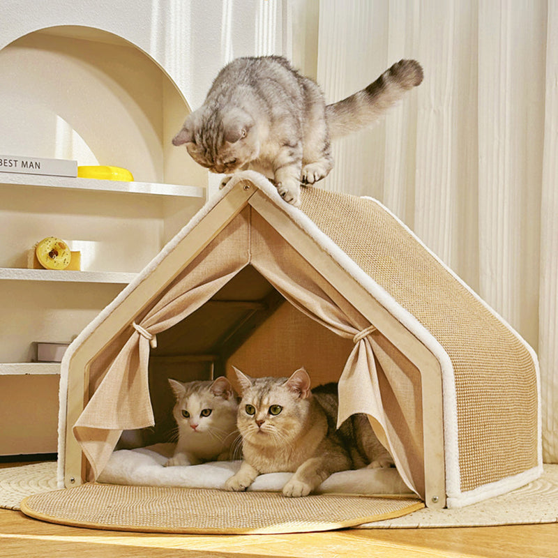 Engineered for the "clean home" lifestyle, this multifunctional den features an integrated high-density sisal scratching pad that is specifically designed to be low-shed and mess-free. Unlike traditional carpeted scratchers that fray and leave debris, this durable surface satisfies your cat’s natural grooming instincts while keeping your floors pristine. This "all-in-one" unit saves valuable floor space by combining a private sleeping suite with a heavy-duty scratching station. Optimized for North American consumers searching for modern wooden cat houses, Scandi-style pet furniture, non-shedding cat scratchers, and enclosed designer cat beds.