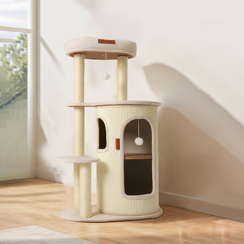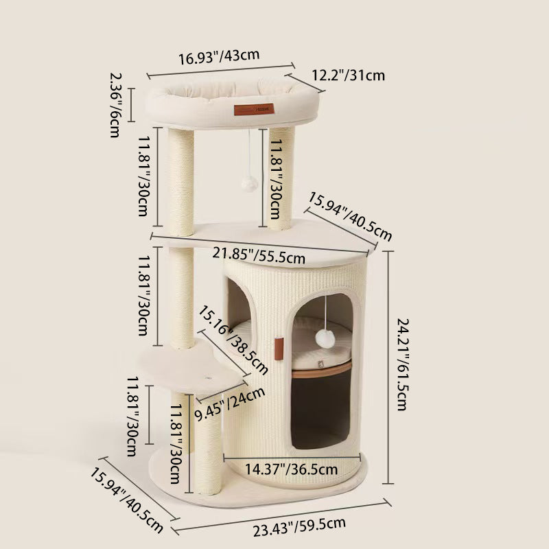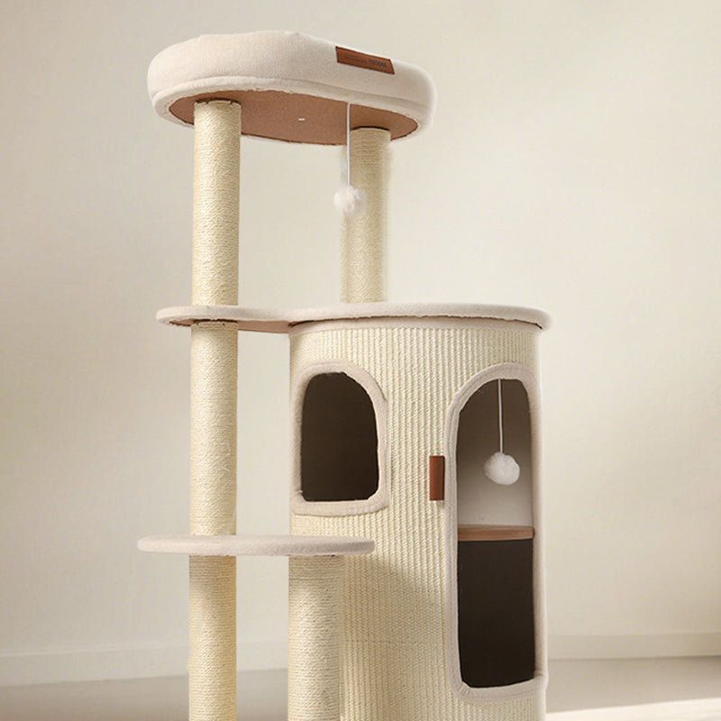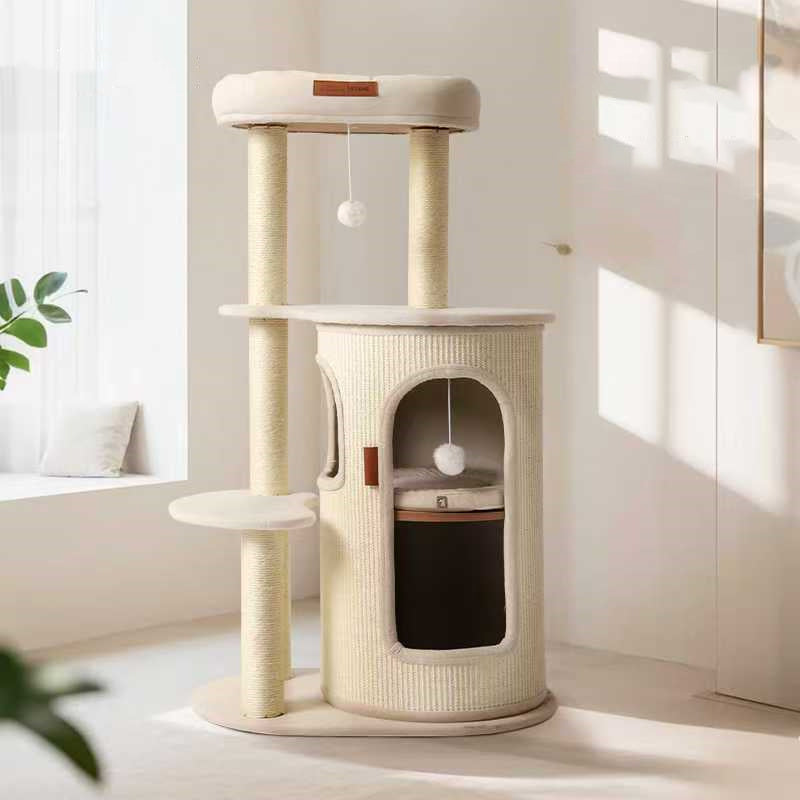 Designed for the ultimate "multi-cat lifestyle," this activity center features overstuffed PP-filled cushions on every level, providing cloud-like orthopedic support for all-day napping. To satisfy natural instincts, the structure is integrated with heavy-duty sisal scratching surfaces, offering a durable and "low-shed" outlet for claw care that keeps your sofas pristine. With its calming warm beige and off-white palette, this 4-story sanctuary provides a stable, "wobble-free" environment for climbing, playing, and resting year-round.