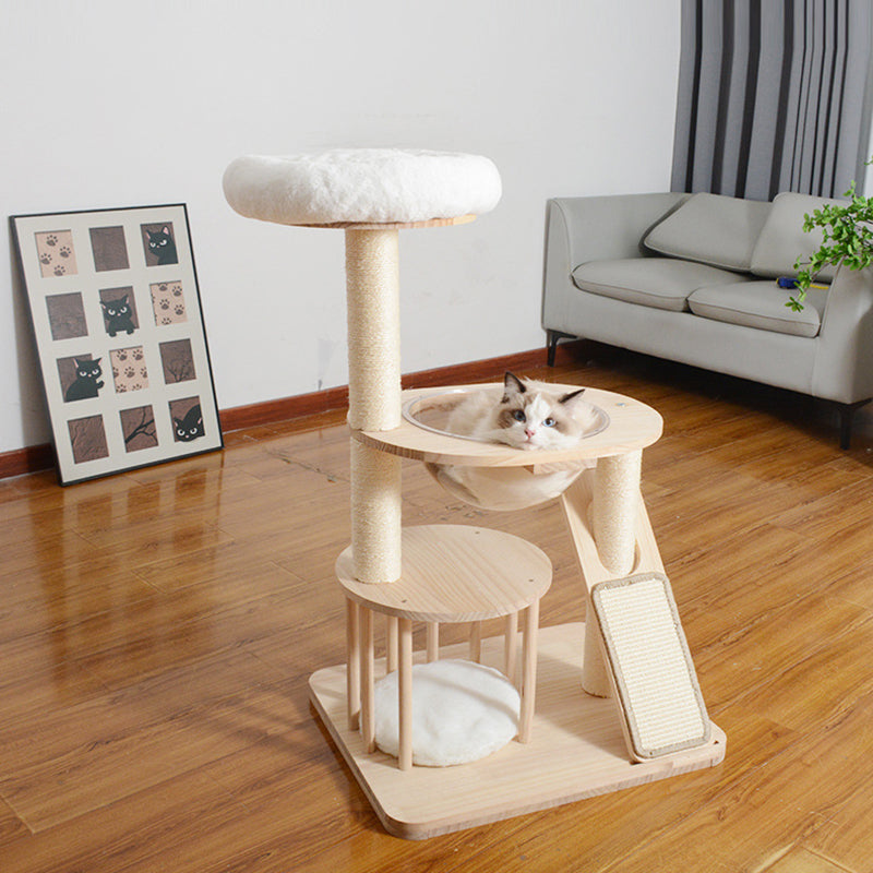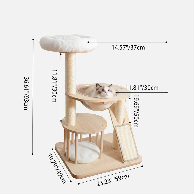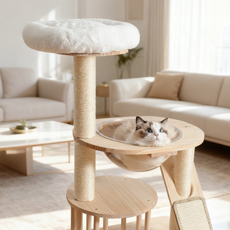 Designed as a "total wellness retreat," this stable multi-level structure provides a strategic balance of high-energy play and deep restorative rest. The tower features extra-wide plush resting platforms that provide ample room for large cats to stretch out fully, while the structural pillars are wrapped in industrial-strength natural sisal, creating a "dedicated scratching zone" that protects your premium upholstery. Whether it's for a single Maine Coon or a multi-cat household, this durable rubberwood tower offers "all-season reliability" and a timeless aesthetic. Optimized for North American consumers searching for solid wood cat trees for large cats, heavy-duty rubberwood pet towers, modern 3-tier cat furniture, and sturdy Scandinavian cat climbers.