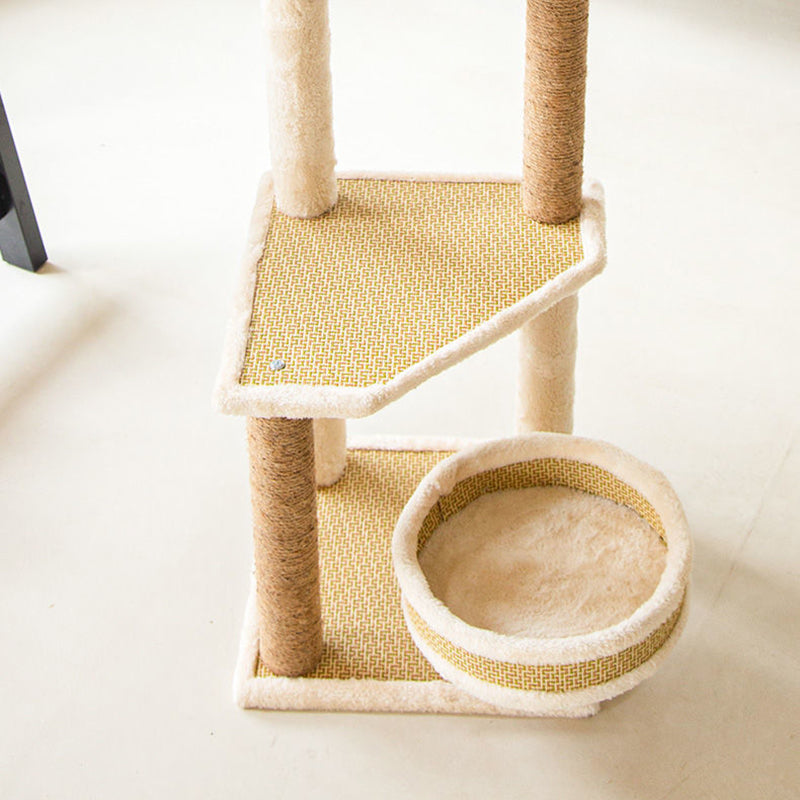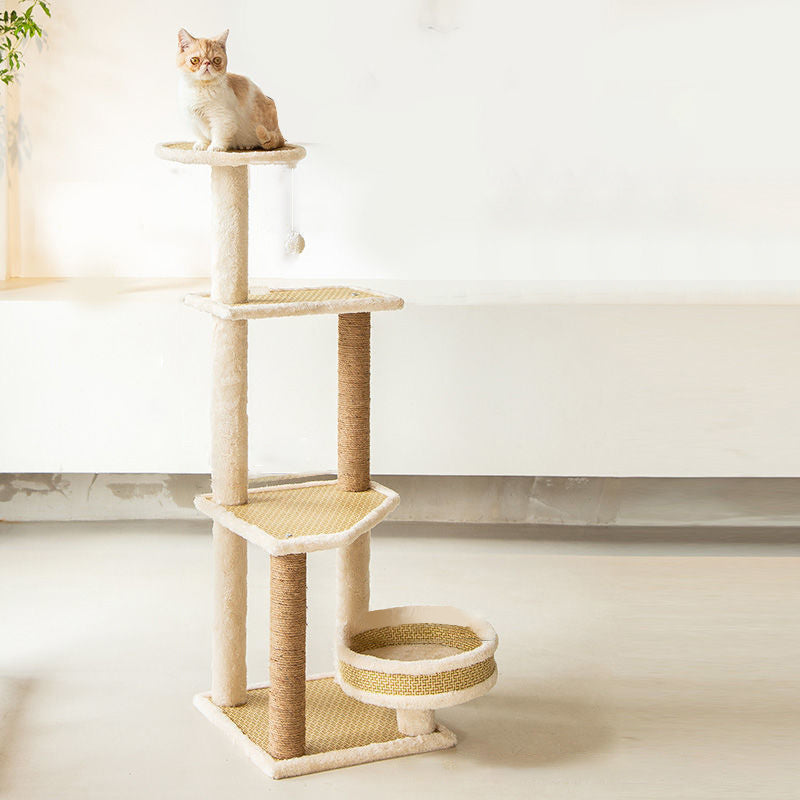 Embrace the perfect harmony of nature and modern design with our contemporary Nordic cat tree, an architectural sanctuary for the "eco-conscious" pet home. Precision-crafted from E1-grade engineered wood for superior structural integrity, this tower features a sturdy square design that ensures a wobble-free experience even during active play. The standout integration of breathable rattan mats and soft fabric surfaces creates a "biophilic" aesthetic that mirrors the outdoor world, making it a sophisticated addition to any modern living room or bedroom while providing a refreshing, ventilated environment for your feline.