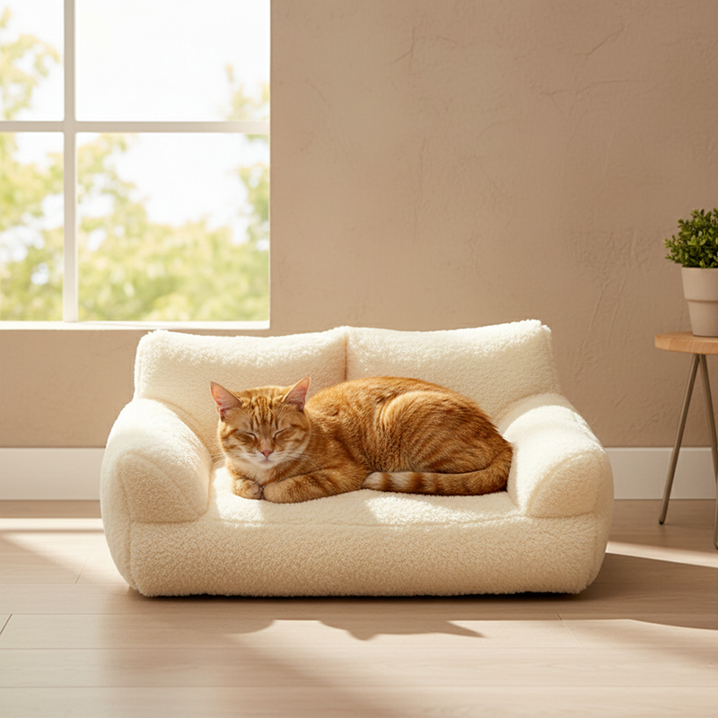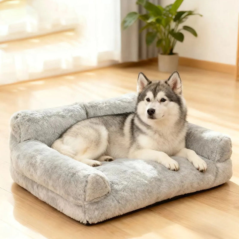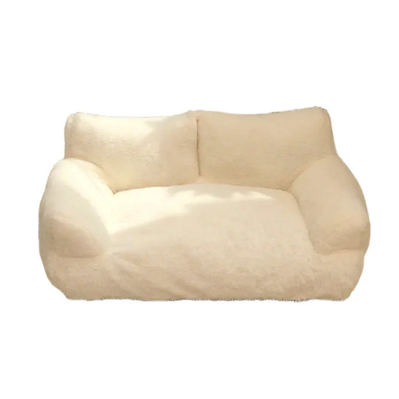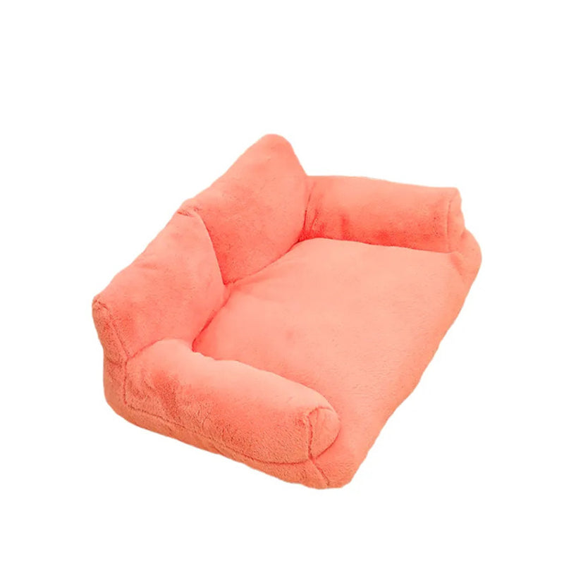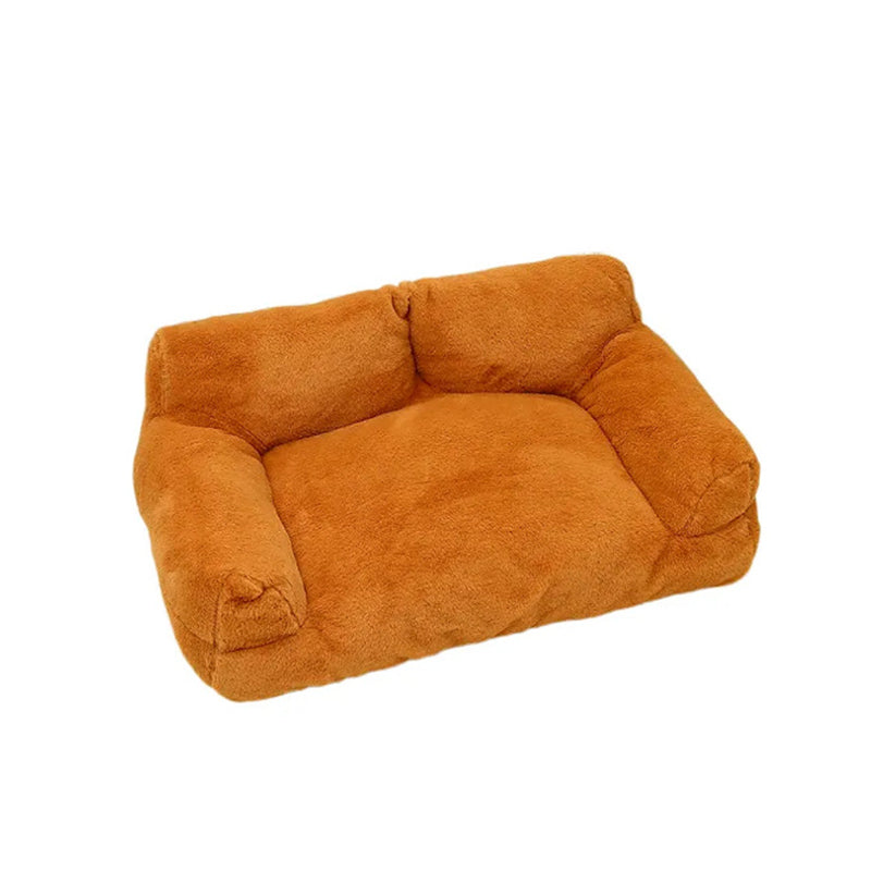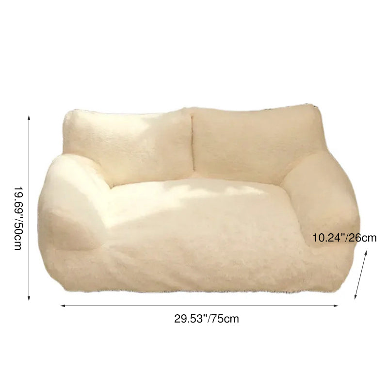 Offer your pet the ultimate retreat with this modern minimalist sofa bed. Boasting soft faux rabbit fur and cloud-like PP-cotton filling, its cozy rectangular design features a high backrest and supportive armrests for unparalleled comfort. Available in gray, white, orange, and pink, this stylish and highly cushioned bed is the perfect relaxation spot for pets of all sizes, making a sophisticated addition to any living room.