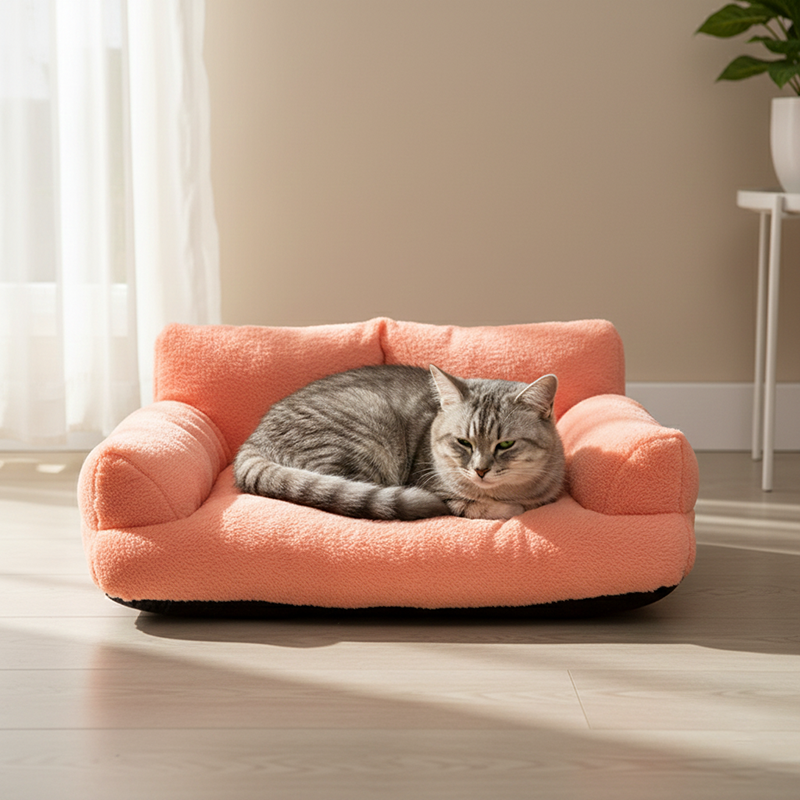 Modern Minimalist Rectangular Faux Rabbit Fur PP Cotton Cat Bed Backrest Armrest For Living Room