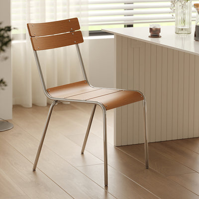 Modern Minimalist Square Solid Wood Plywood Electroplated Iron Dining Chair Backrest For Dining Room