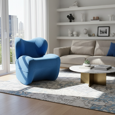 Modern Minimalist Curved Chenille Fabric EPS Sponge Accent Chair Backrest For Living Room