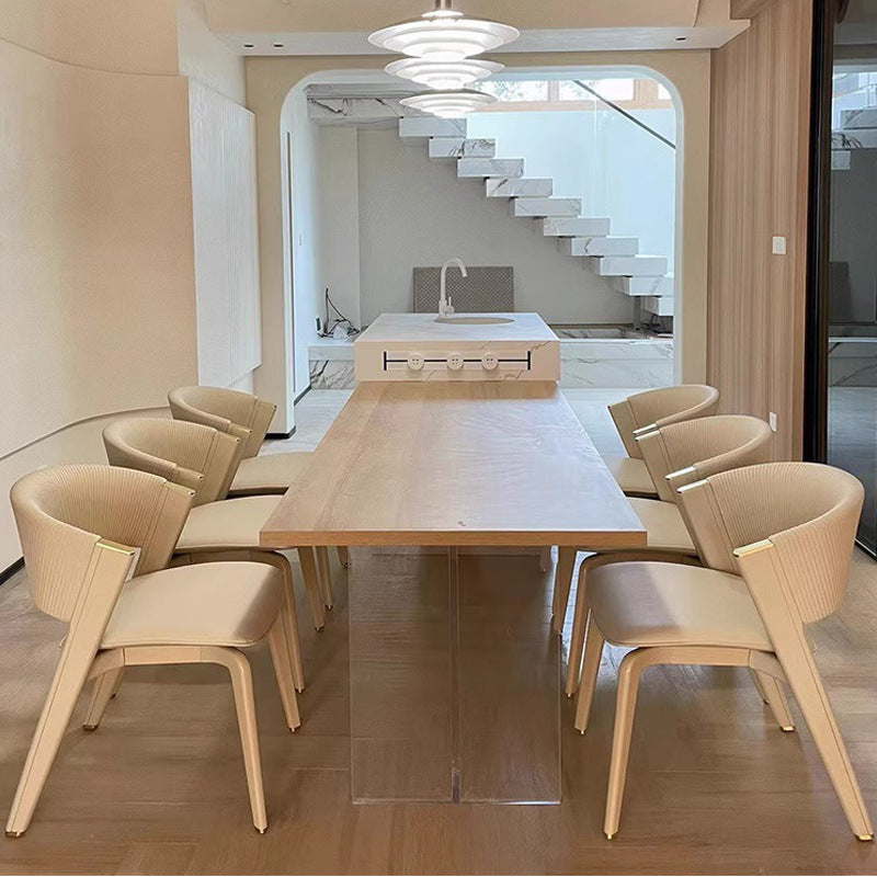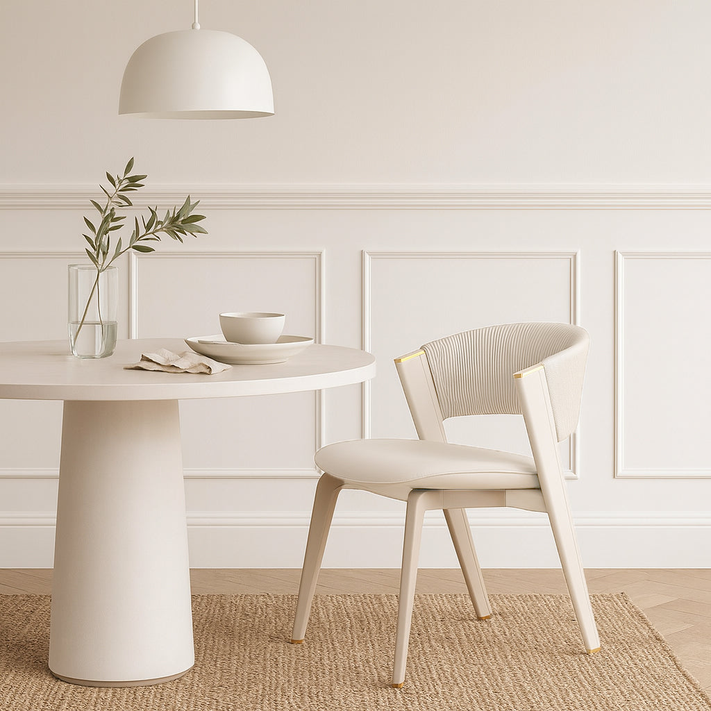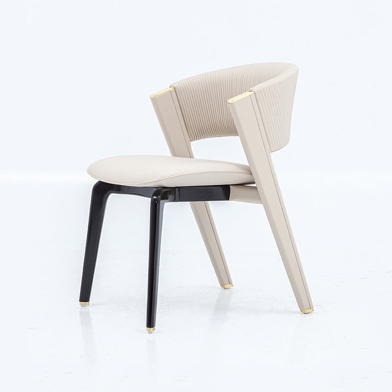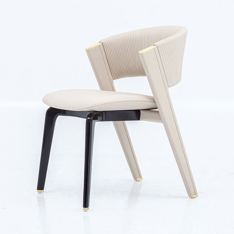 Introducing a modern minimalist dining chair designed to seamlessly enhance any contemporary interior. This piece masterfully blends support and style, featuring a soft cushioned seat, an ergonomic backrest, and an elegant curved silhouette. Crafted from robust solid wood and upholstered in high-quality PU leather, it is offered in versatile off-white and timeless black. Perfect for restaurants and upscale dining spaces seeking a durable, comfortable, and chic seating solution.