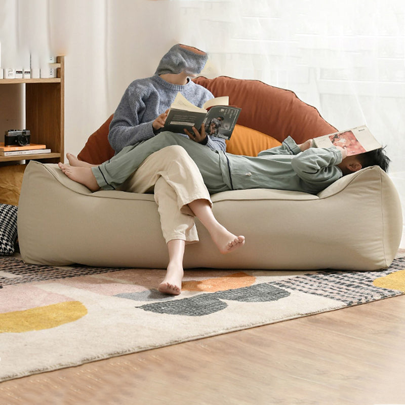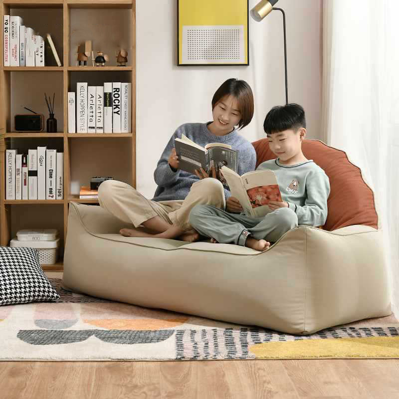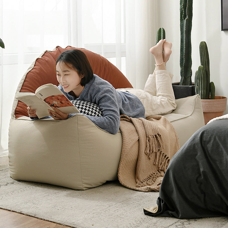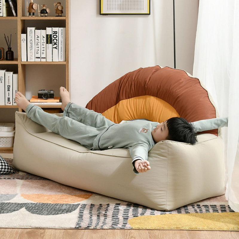 This contemporary rainbow-shaped lounge chair features durable nano-leather upholstery and supportive EPP particle filling for a soft, stable, and comfortable seating experience. Designed with a cozy backrest and armrests, this khaki-colored accent chair is easy to clean and perfect for creating a relaxing reading nook in the living room.