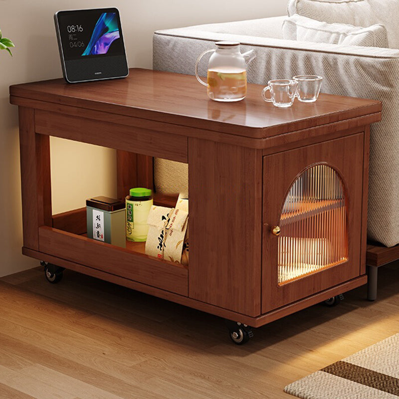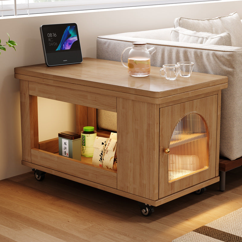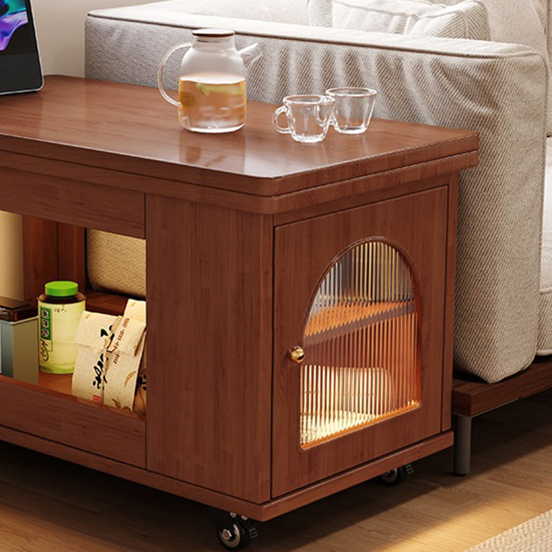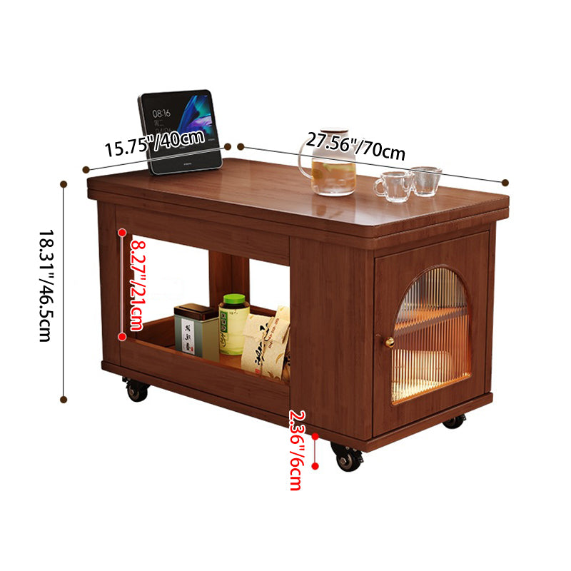 Contemporary Creative Rectangular Cart-Style Solid Wood Glass Coffee Table 2-Tier For Living Room