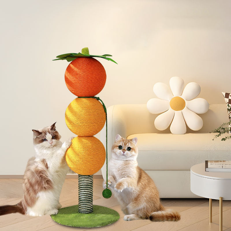 Contemporary Creative Round Candied Hawthorn-Shaped Faux Panel Sisal Velvet Fabric Cat Tree For Bedroom