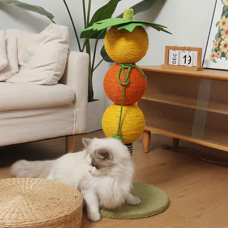 Treat your feline friend to a playful and effective scratching experience with this cheerful candy-inspired cat scratching post. The compact vertical design features an extremely durable scratching surface constructed from thick natural sisal, which is expertly wrapped to satisfy essential clawing instincts. Soft plush accents are integrated to add textural appeal and comfort, making it an inviting place for your cat to interact.
