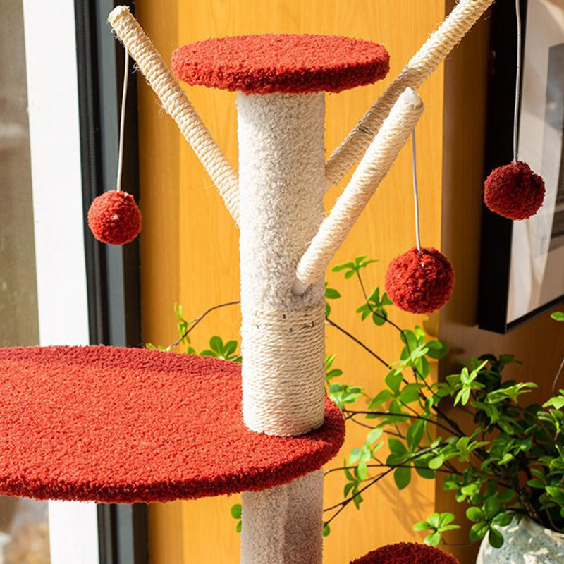 Contemporary Creative Round Candied Hawthorn-Shaped Medium-Density Fiberboard Sisal Fabric Multi-Functional Cat Tree 2/4-Tier For Living Room