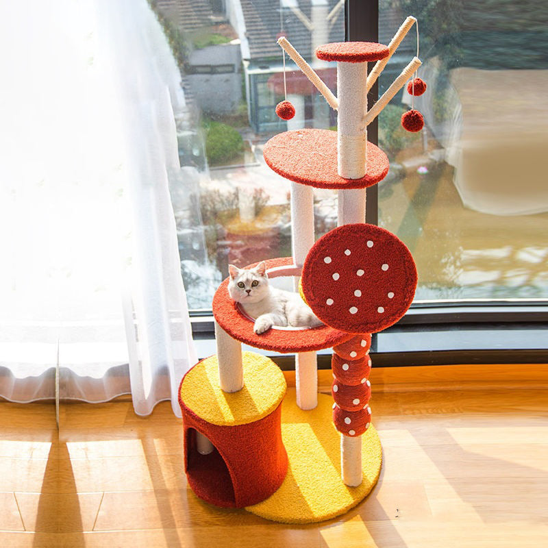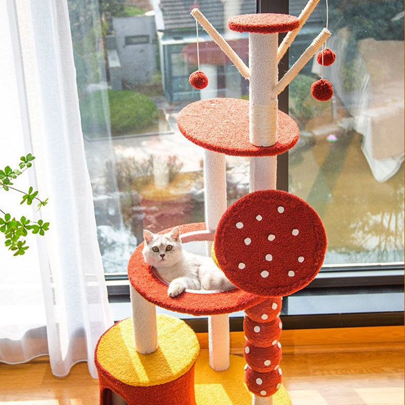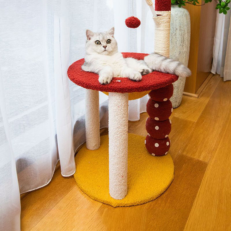 Brighten your home with this striking modern round cat tree, a playful, multi-functional habitat designed for the active, multi-cat household. The sturdy structure is built around durable MDF platforms, offering customizable height with options for a 2- or 4-level design. The tower features whimsical, sisal-wrapped "candied fruit" scratching posts, providing an irresistible and effective surface for paw maintenance and climbing fun.