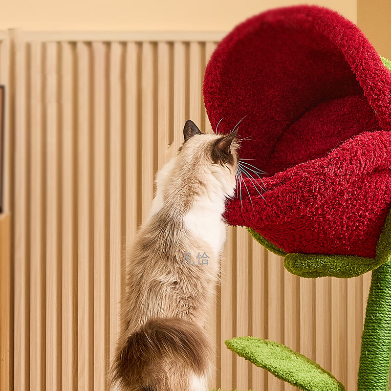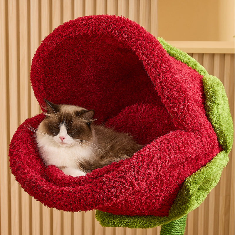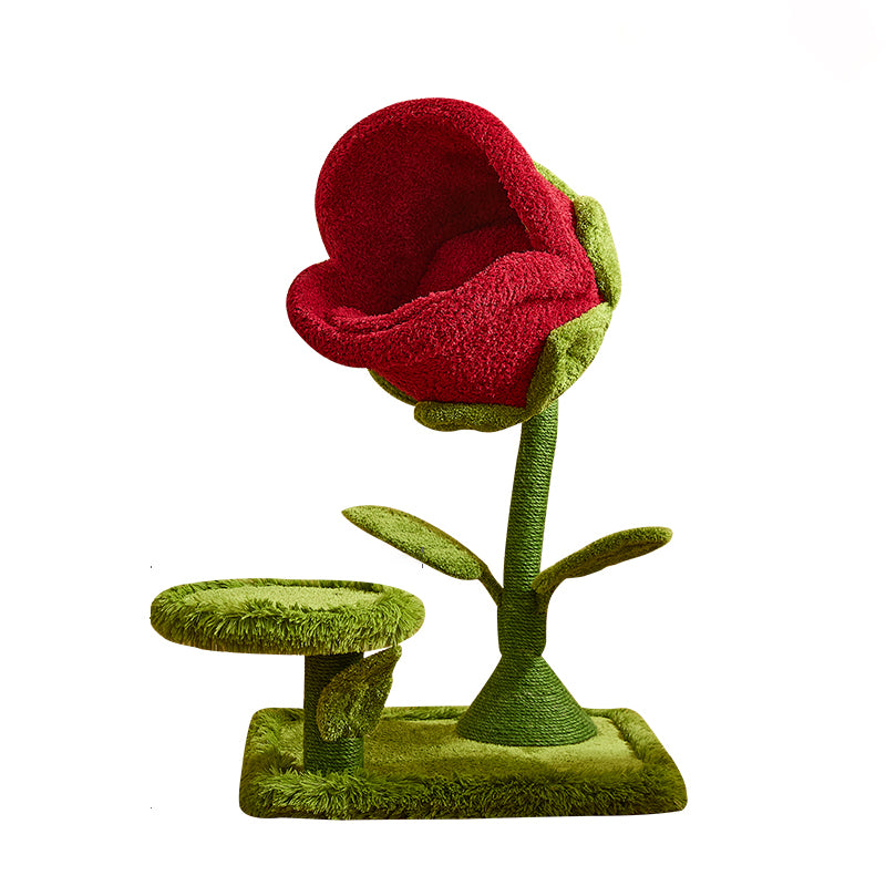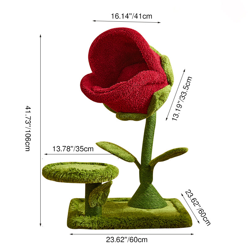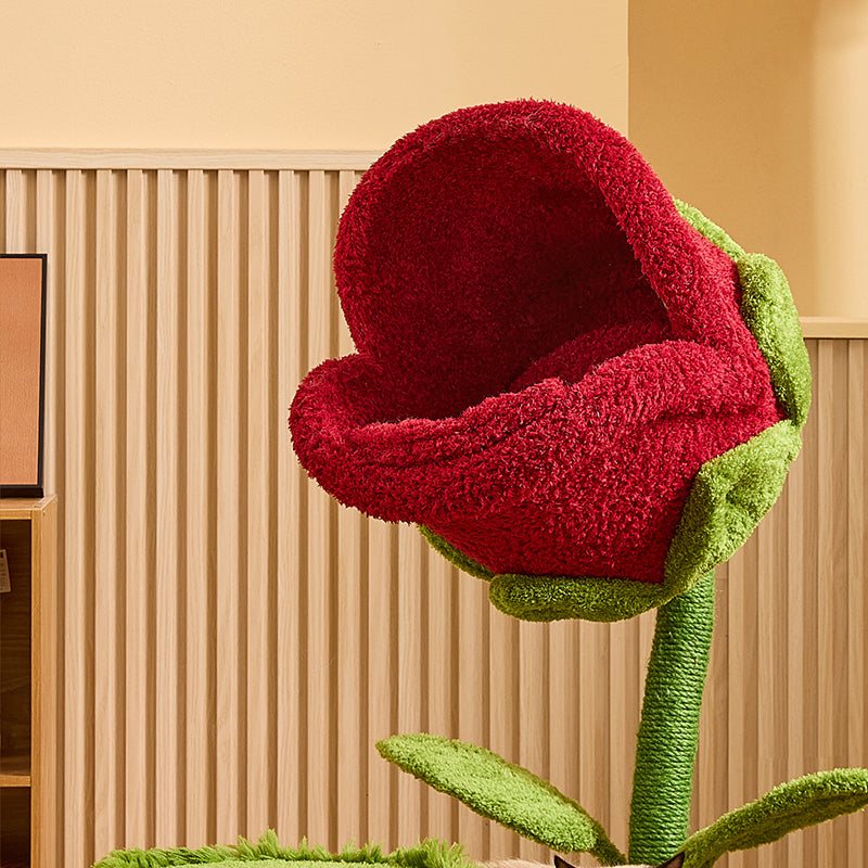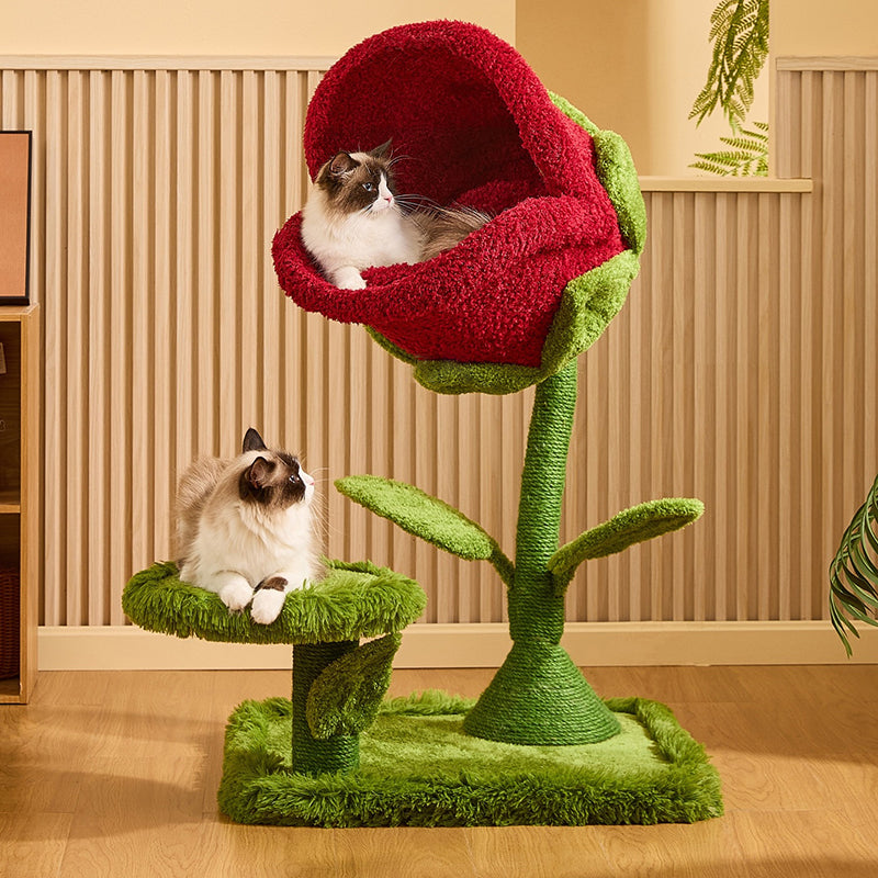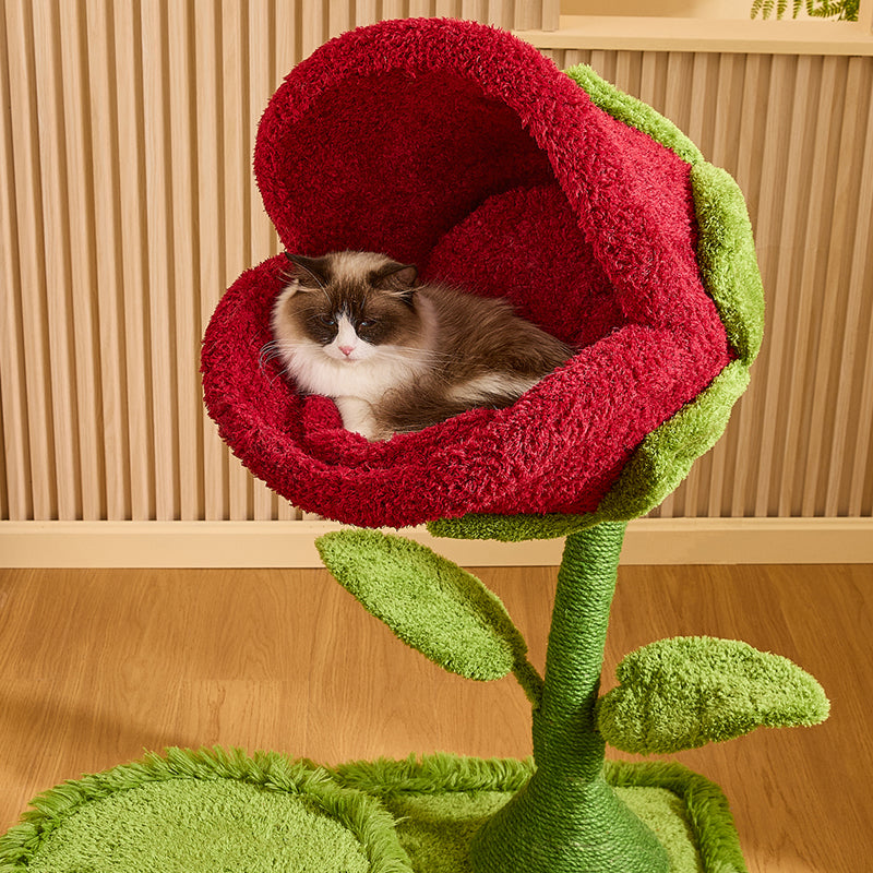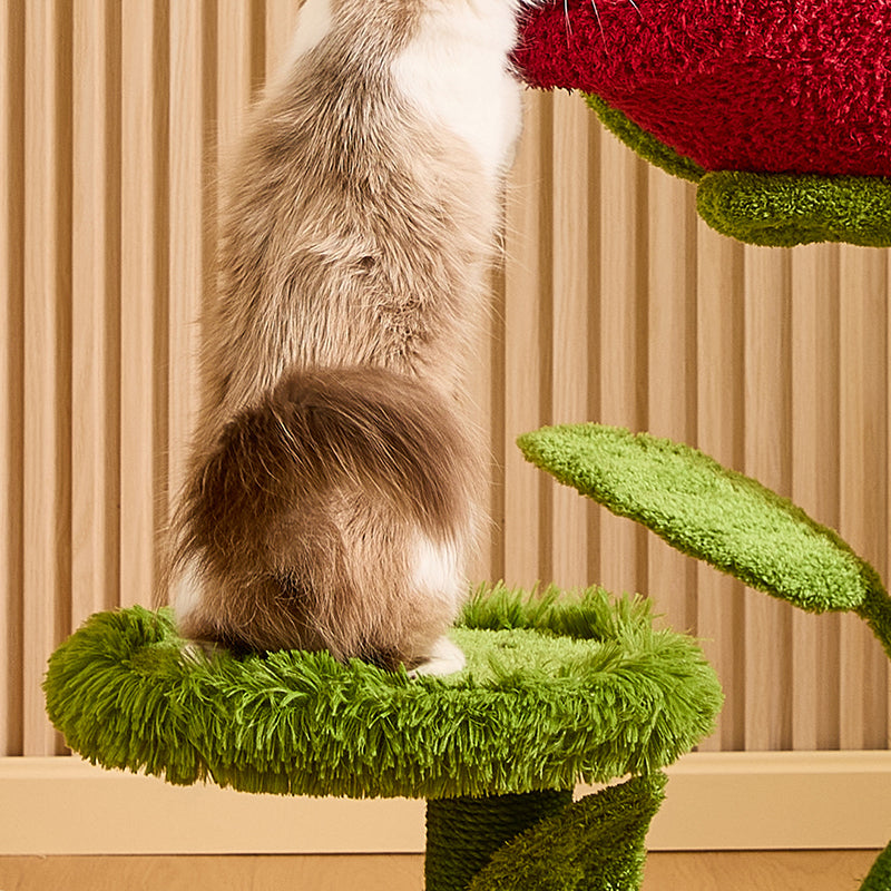 Engineered for smaller homes, this cat tower is made for small spaces, providing both vertical climbing opportunities and a luxurious resting area in a compact footprint. Integrated, durable sisal scratch posts satisfy essential clawing instincts, promoting pet health and protecting your furniture. This unique, stylish, and fun tower is essential for curious, active cats and is optimized for North American consumers searching for flower-shaped cat trees, small space sisal scratchers, carnivorous plant pet furniture, and vibrant red and green cat condos for living rooms or bedrooms.