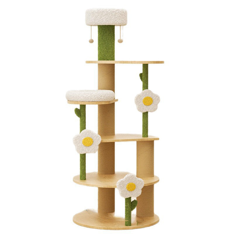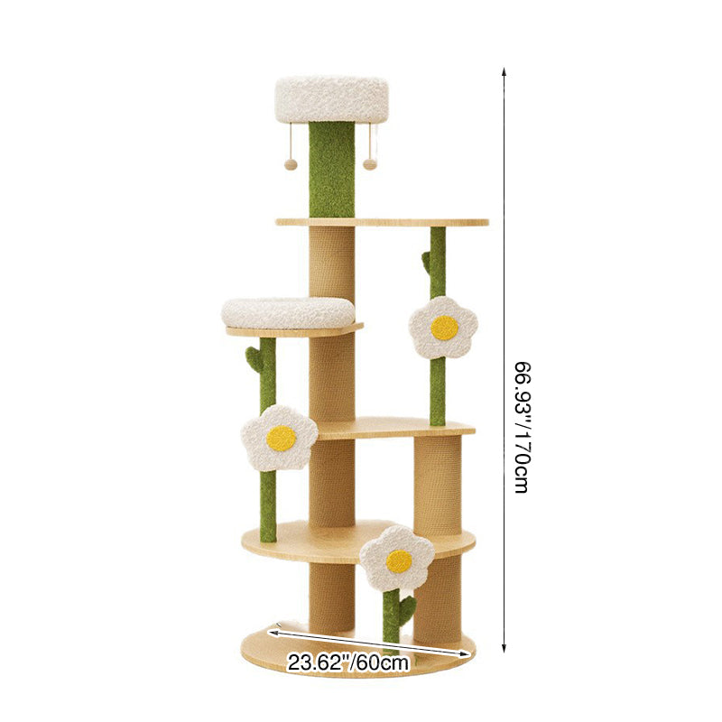 Bring a fresh, charming aesthetic to your home with this spectacular 6-tier round cat tree, featuring a whimsical daisy-inspired design. This all-in-one cat condo is crafted for maximum stability and longevity, built on a robust solid wood frame and finished with a comforting blend of soft plush fabric and durable natural sisal. This unique vertical structure creates a cozy, engaging habitat for your pets.