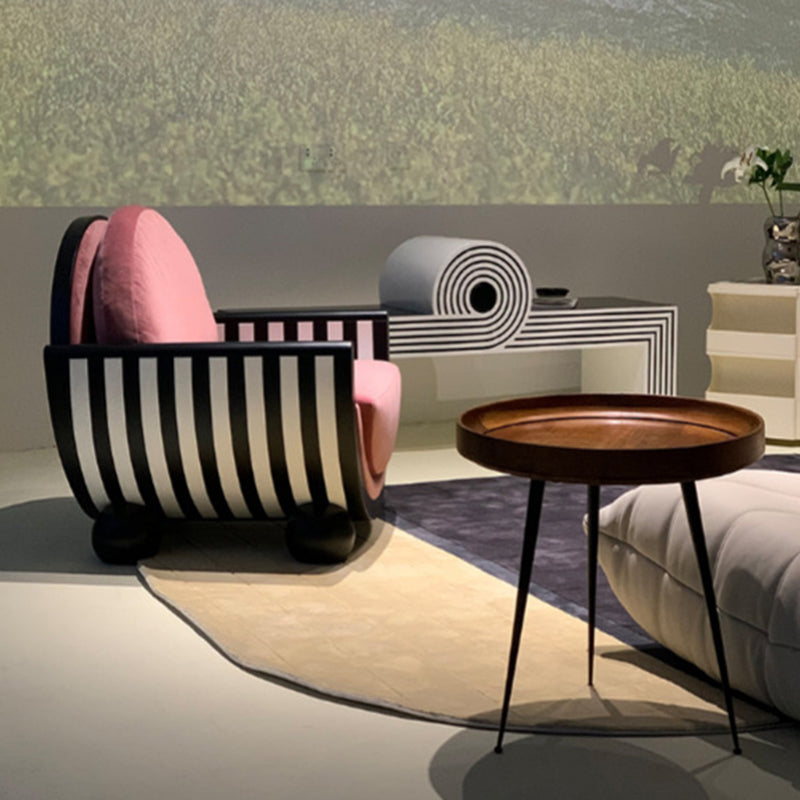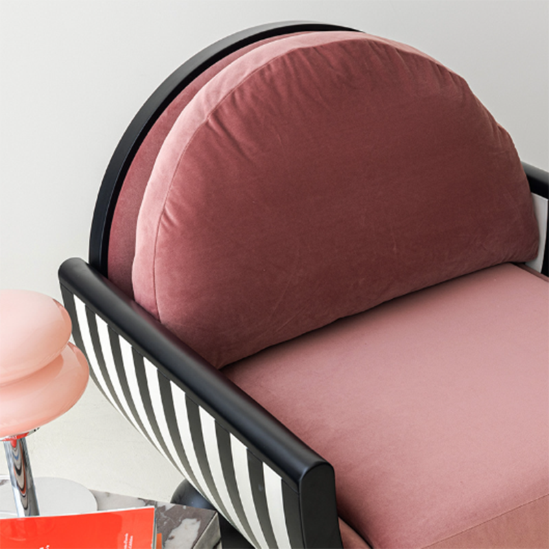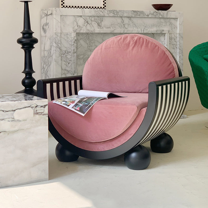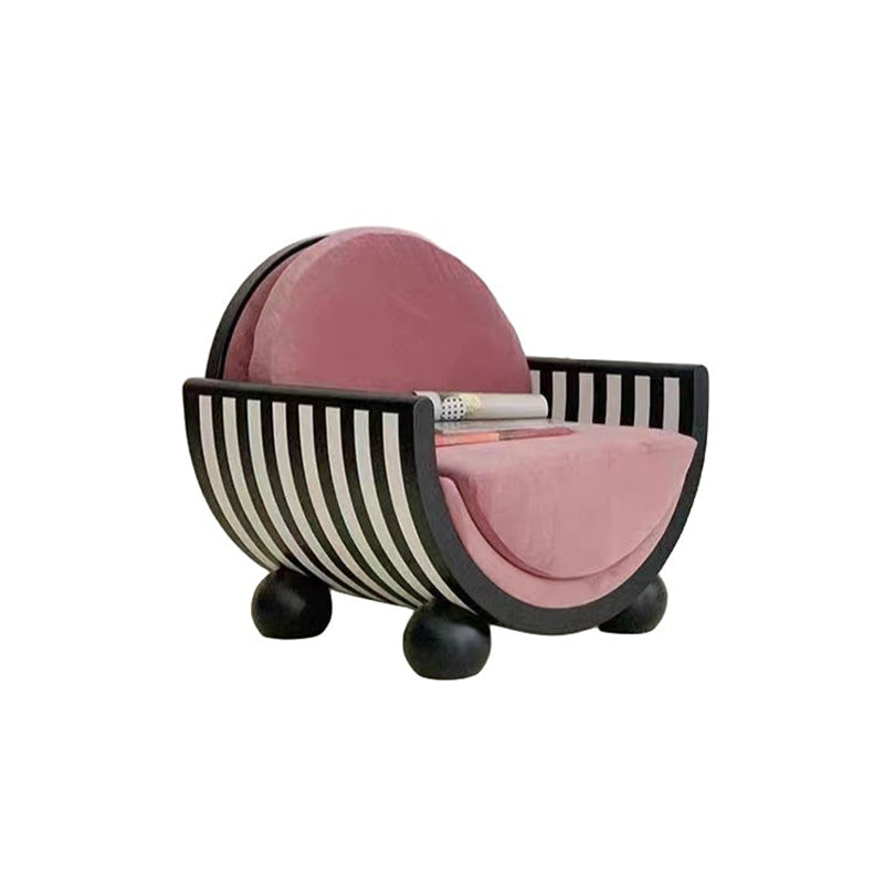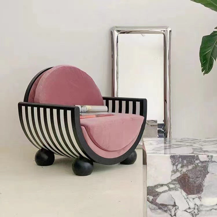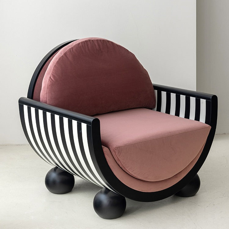 This contemporary creative lounge sofa chair features a playful U-shaped “smile” design, soft velvet upholstery, and a sturdy solid-wood frame for stable support and exceptional comfort. Available in pink, black, and white, it includes a supportive backrest and armrests, delivering both style and ergonomics—perfect for elevating any modern living room.