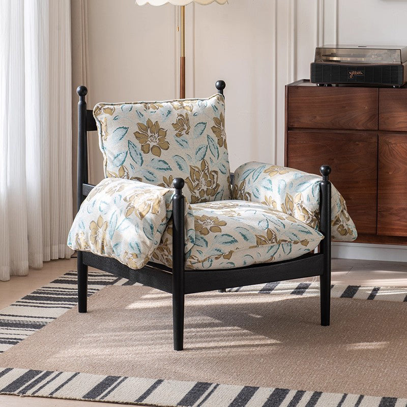 Introduce timeless elegance to your home with this French traditional accent armchair. Featuring a durable solid oak frame that speaks to classic craftsmanship, this chair provides stable support and supreme comfort. It is beautifully appointed with soft fabric upholstery and high-resilience cushioning for cozy, lasting seating. The rectangular silhouette, complete with both backrest and comfortable armrests, brings a refined vintage charm to any living room. This single-seat lounge chair is designed to blend durability with cozy relaxation, perfectly elevating contemporary home interiors.
