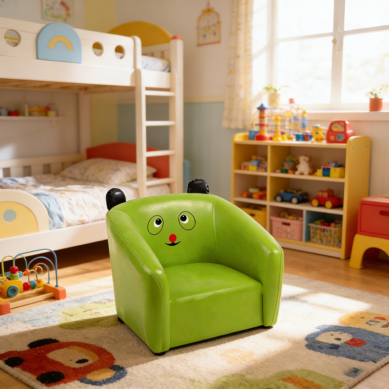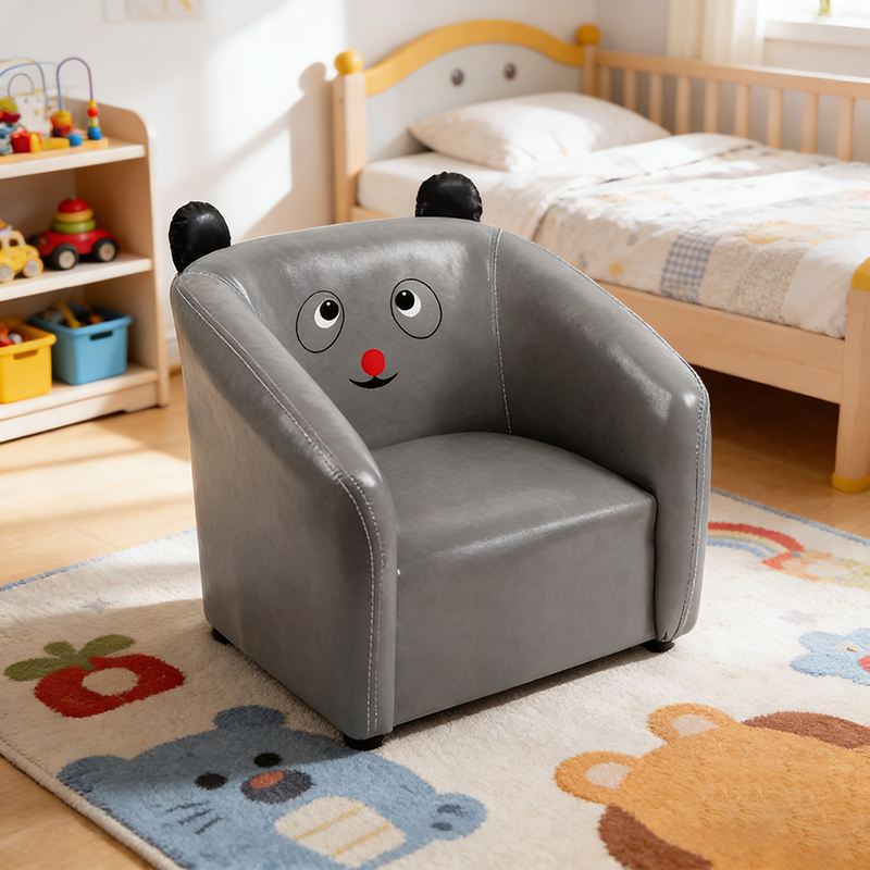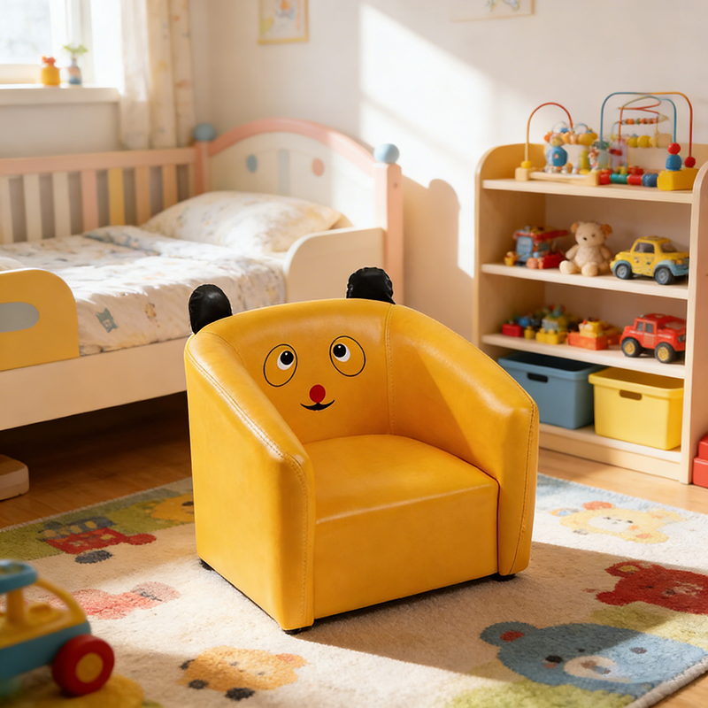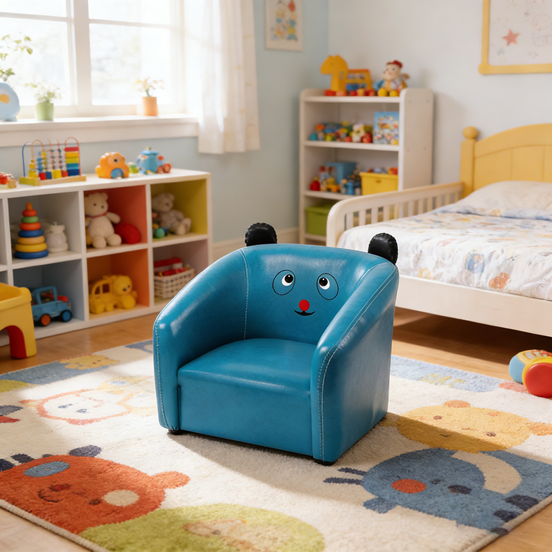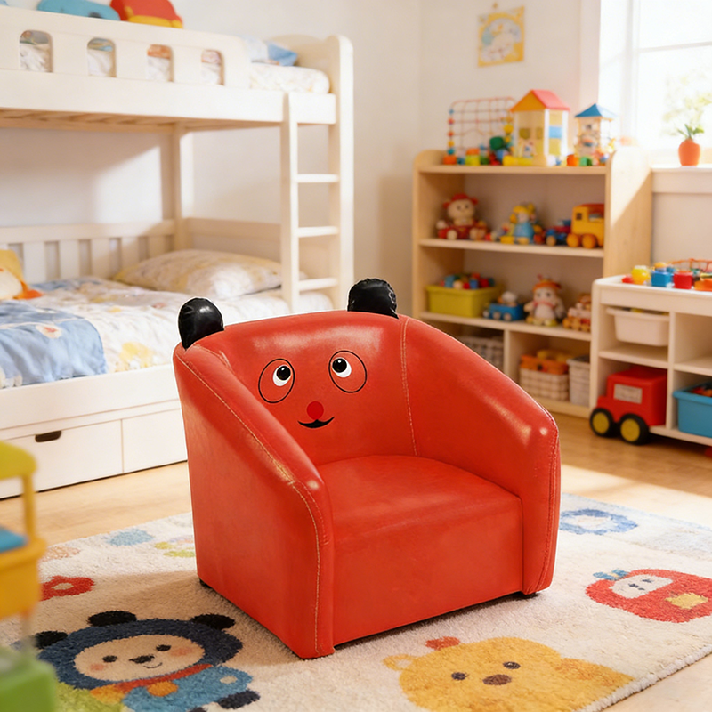 Elevate your child’s space with this contemporary creative kids sofa chair, featuring a charming bear-shaped design that blends playfulness with modern elegance. The supportive backrest and integrated armrests create a cozy and secure seating experience, perfectly tailored for little ones. Built to last, the chair is meticulously crafted with premium waxed leather upholstery, a sturdy solid wood frame, and high-resilience foam for exceptional weight support and enduring comfort. Available in an extensive palette—including yellow, pink, blue, orange, gray, navy blue, red, and light green—it serves as a high-quality centerpiece for living rooms and children’s bedrooms.