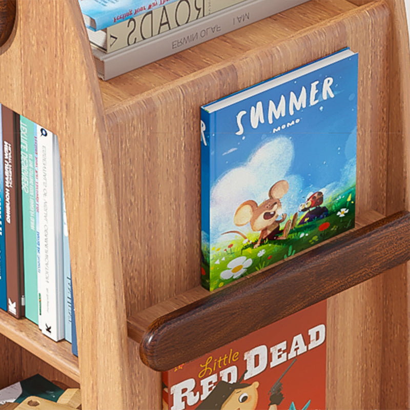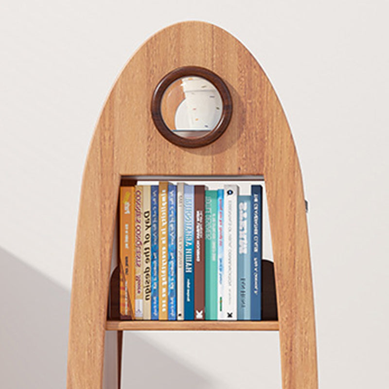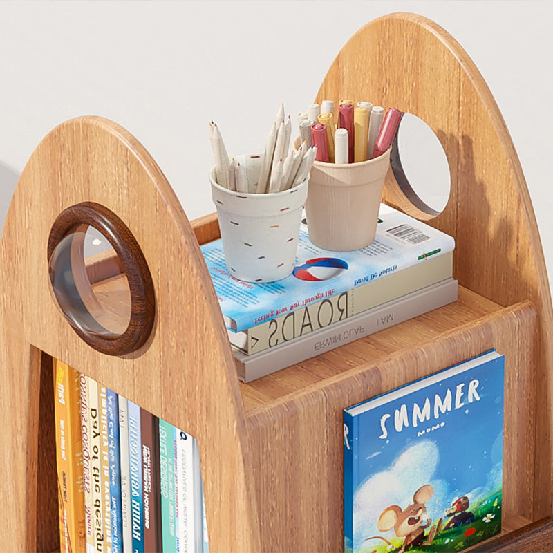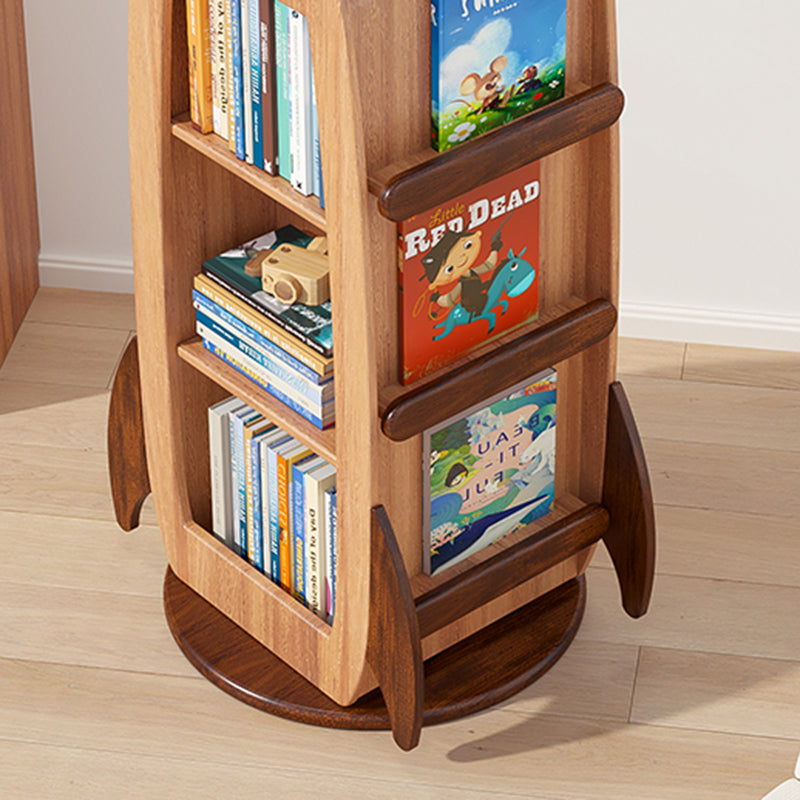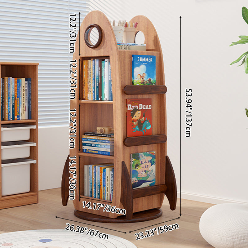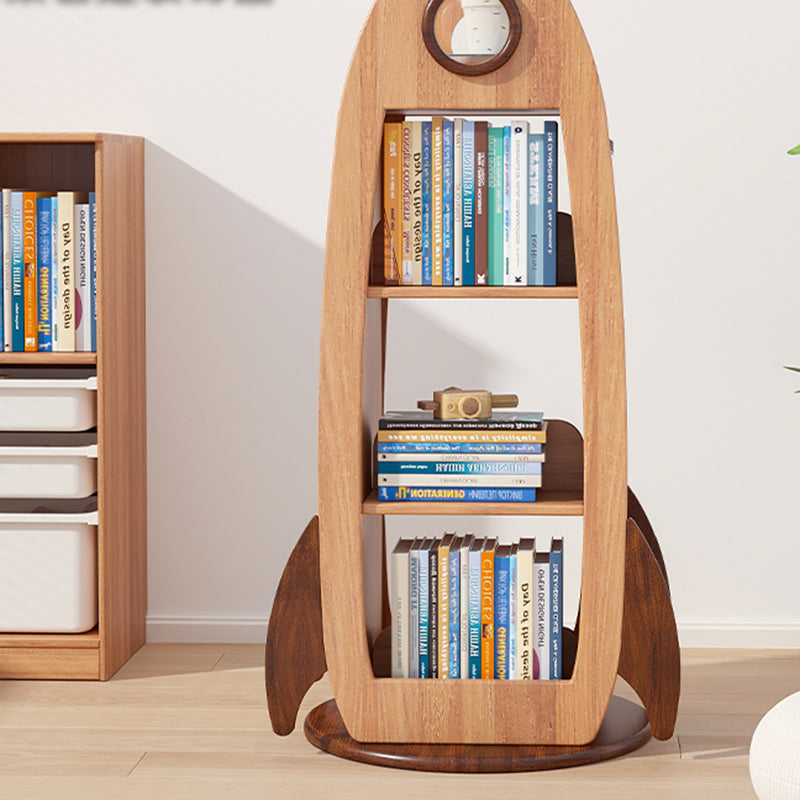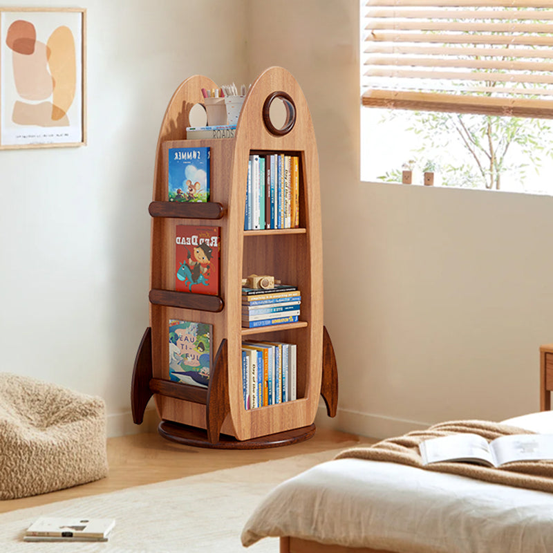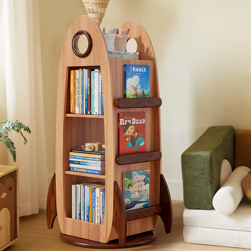 Contemporary Creative Solid Wood Rocket-Shaped Swivel Bookshelf With 4-Tier Storage For Living Room & Bedroom