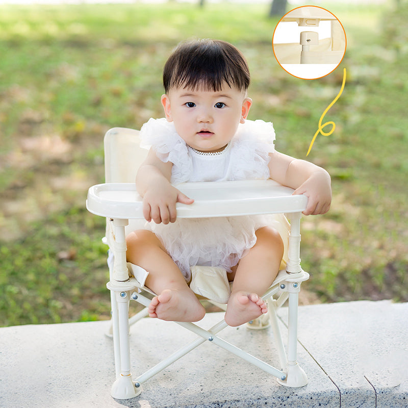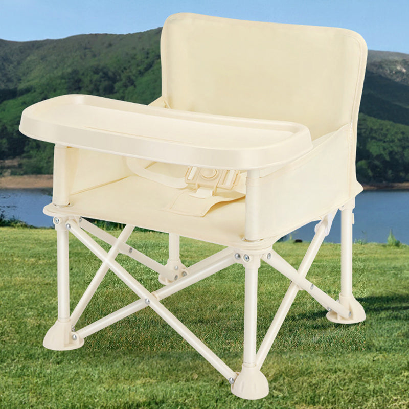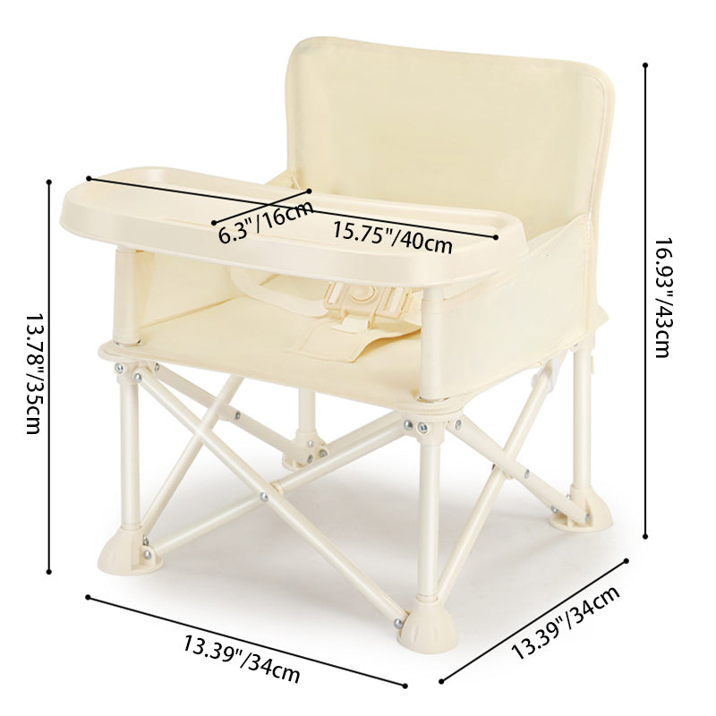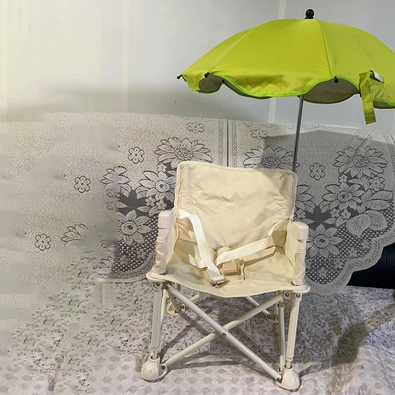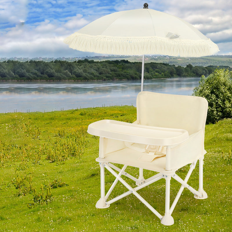 This modern minimalist baby dining chair features a foldable square design crafted from durable Oxford fabric, supported by a stable carbon steel frame. The chair comes in a clean beige color, while the optional sunshade umbrella is available in both beige and green. With a detachable tray, supportive backrest, armrests, and a rear storage pocket, it’s perfect for outdoor picnics, garden use, or restaurant seating.