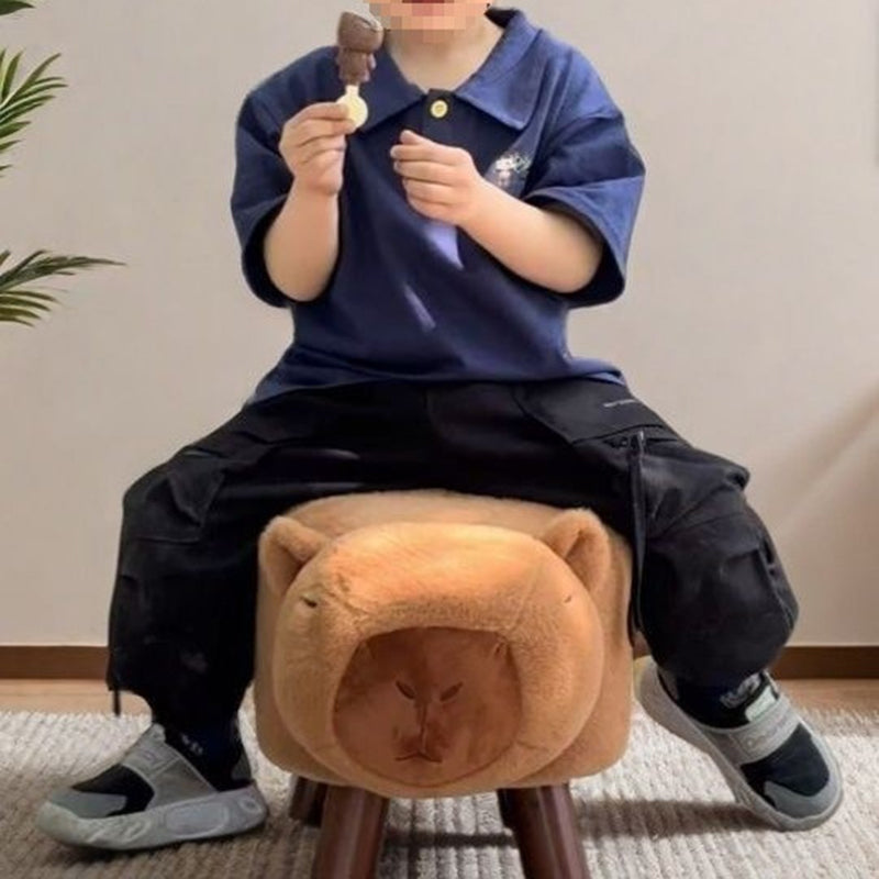 Add a touch of playful charm to your living room or entryway with this modern minimalist Capybara-inspired shoe bench. Crafted from solid wood with a soft fabric cushion and high-density sponge for comfort, this brown rectangular ottoman is both cute and functional - perfect for sitting while changing shoes or adding cozy character to your space.