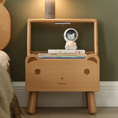 Contemporary Creative Kids Bear Shape Oak Nightstand 1-Drawer For Bedroom