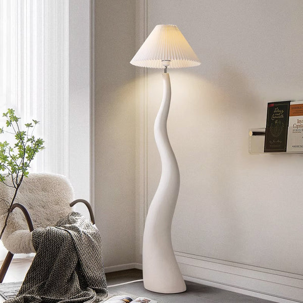 Lampe de sol contemporaine à une lumière en résine et tissu avec vagues effilées créatives pour chambre