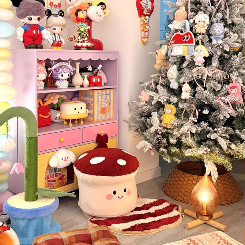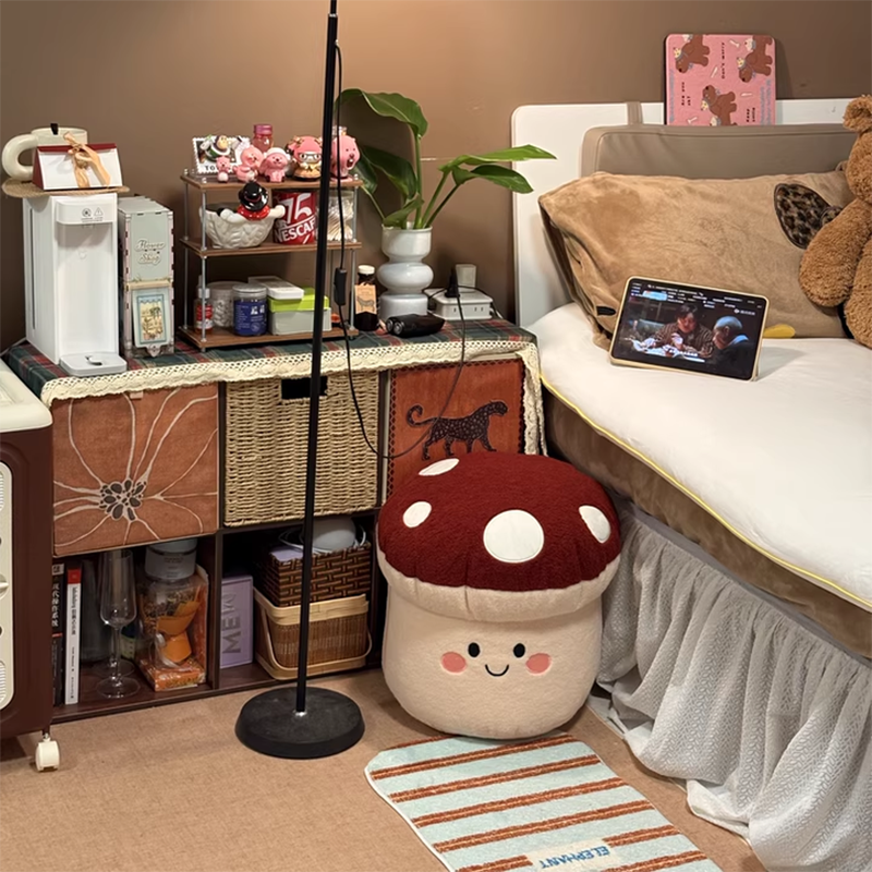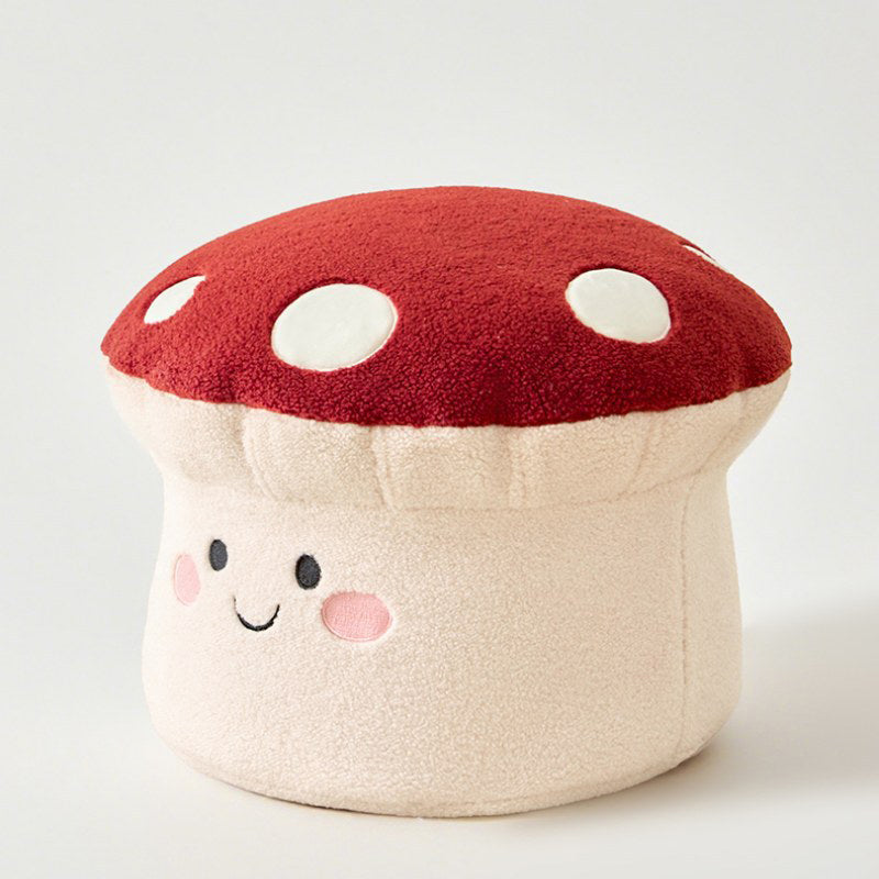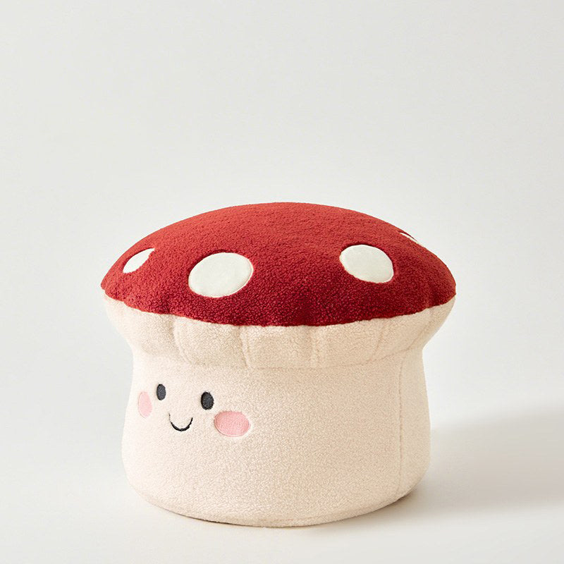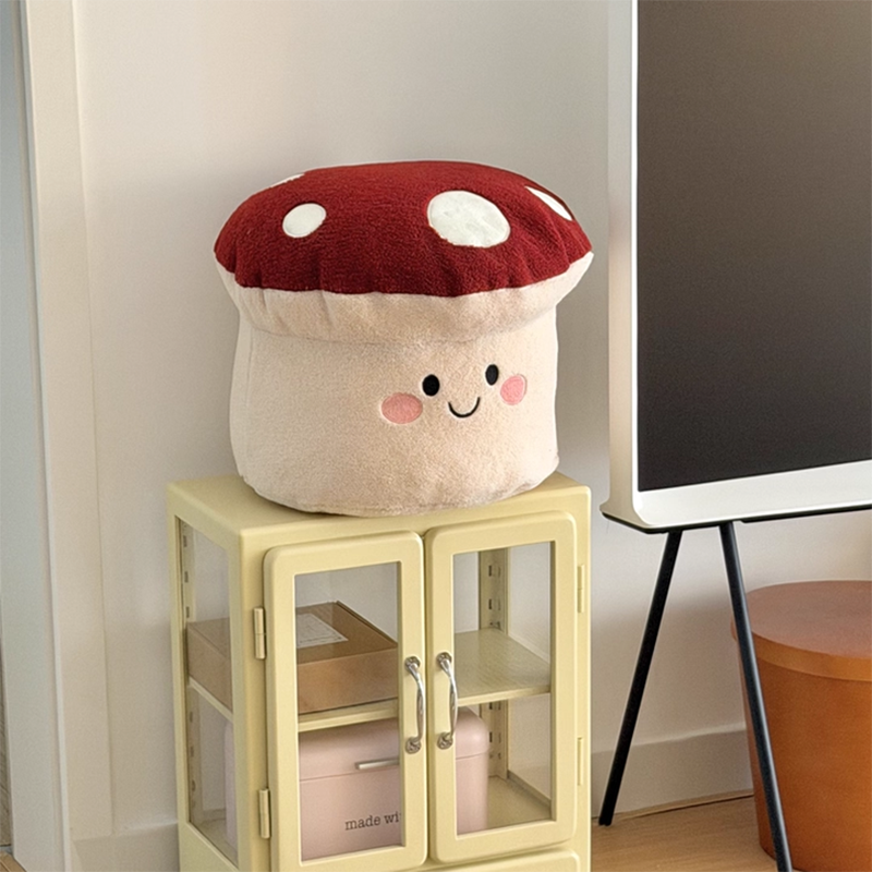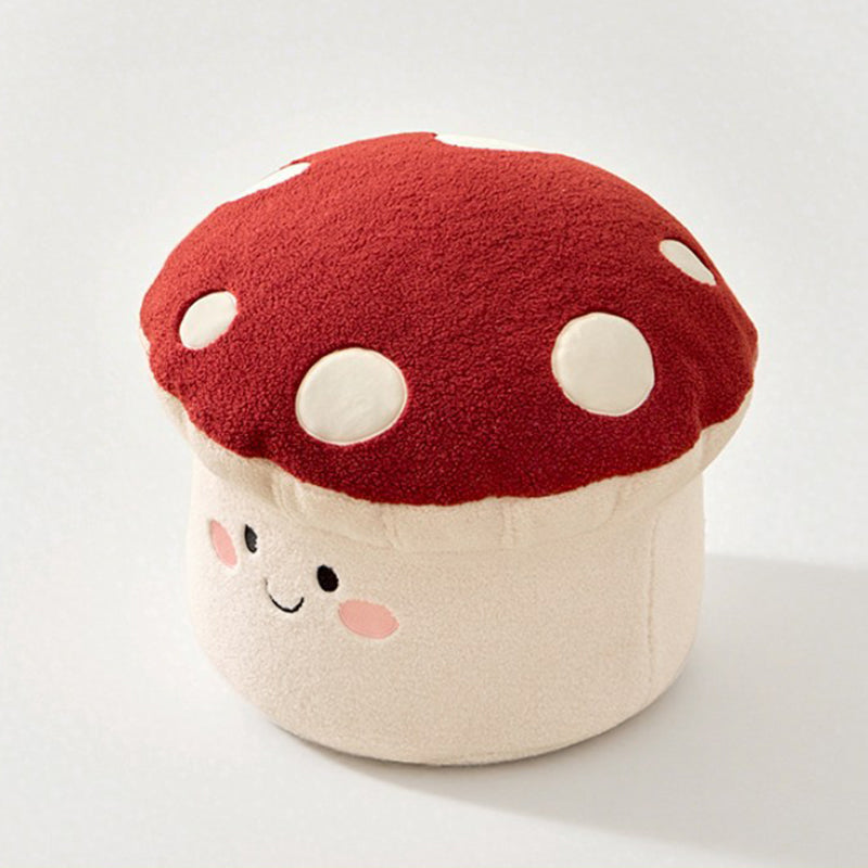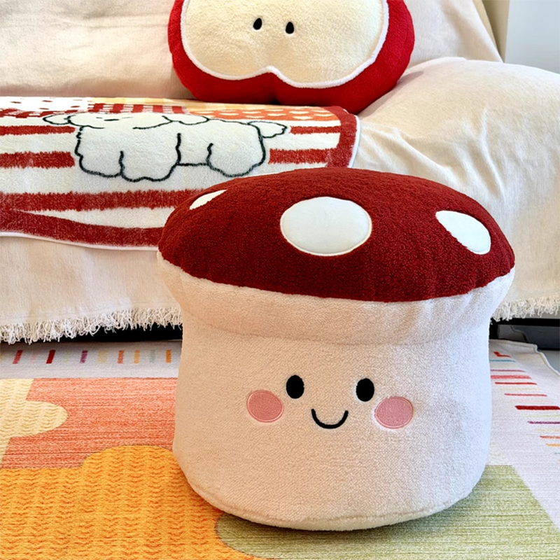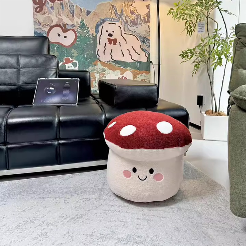 This contemporary creative cartoon mushroom stool features a soft short plush cover and is filled with EPP particles, ensuring comfortable seating that won't sag even after long use. Available in red and white, it's a cozy, stylish addition to living rooms and bedrooms as a floor seat or extra stool.