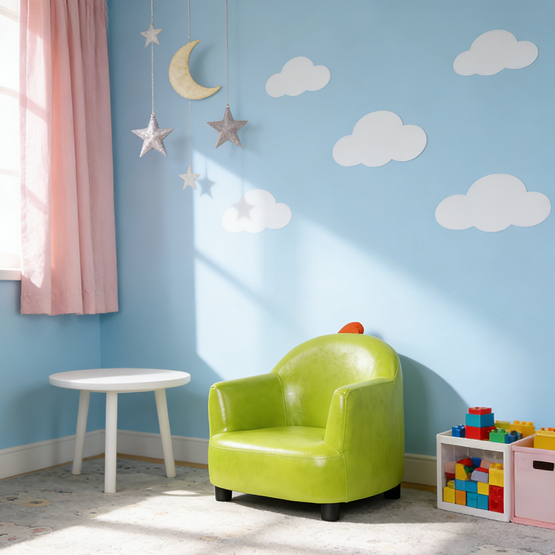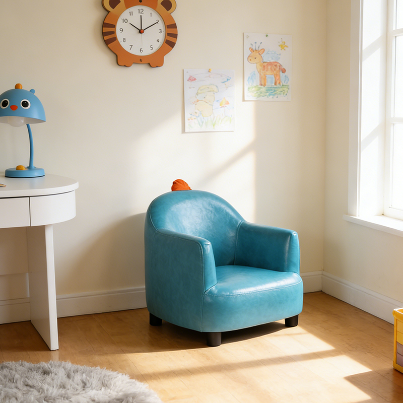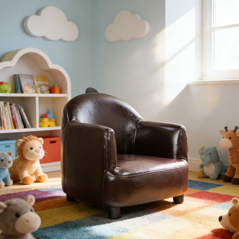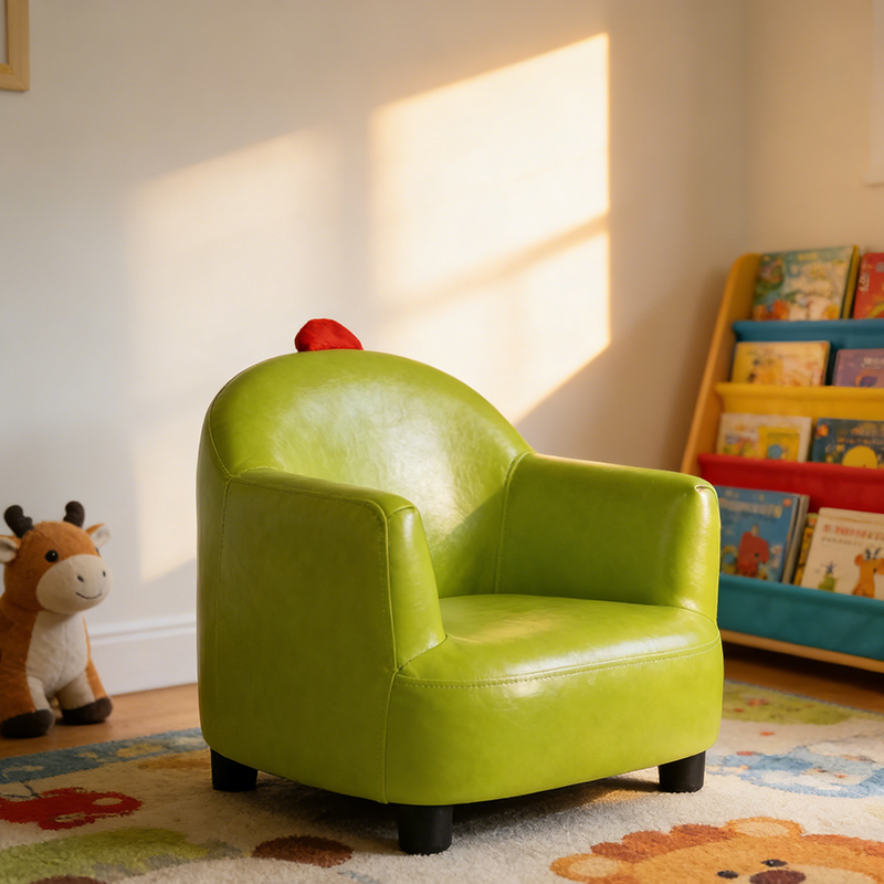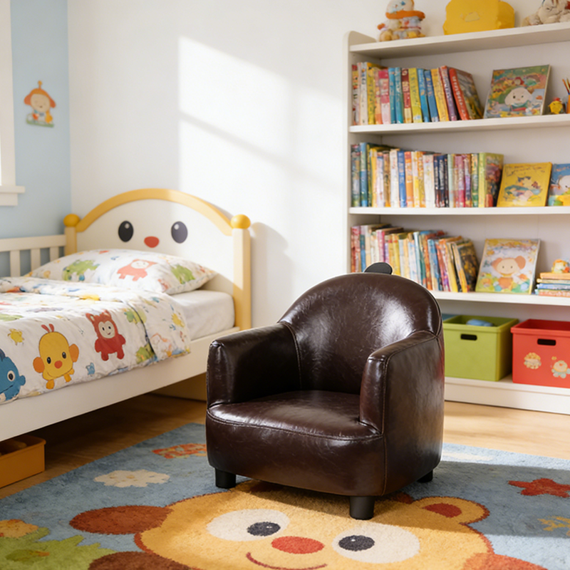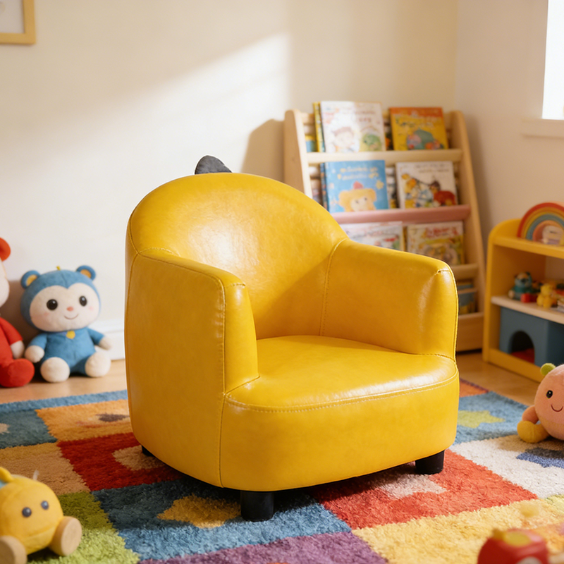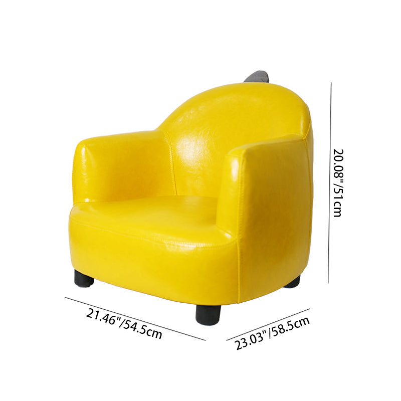 Add a touch of prehistoric magic to your home with this contemporary creative kids sofa chair. Featuring a playful dinosaur-shaped design, this seat is meticulously crafted with premium PU leather upholstery and a robust solid wood frame. Inside, high-resilience foam provides lasting comfort and stability, ensuring a cozy spot for every adventure. With its supportive backrest and armrests, rounded child-safe edges, and sturdy yet lightweight structure, it offers the perfect blend of safety and style. Available in vibrant tones like coffee brown, yellow, green, blue, and black, it is the ideal single-seat sofa for living rooms, playrooms, and children’s reading areas.