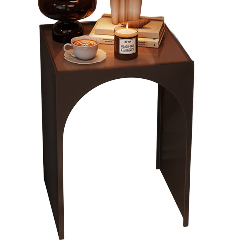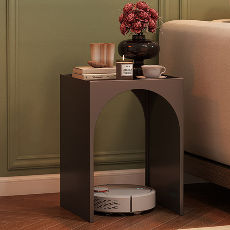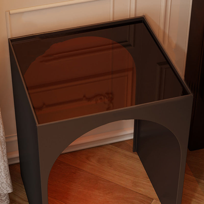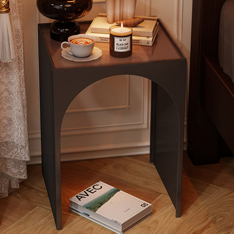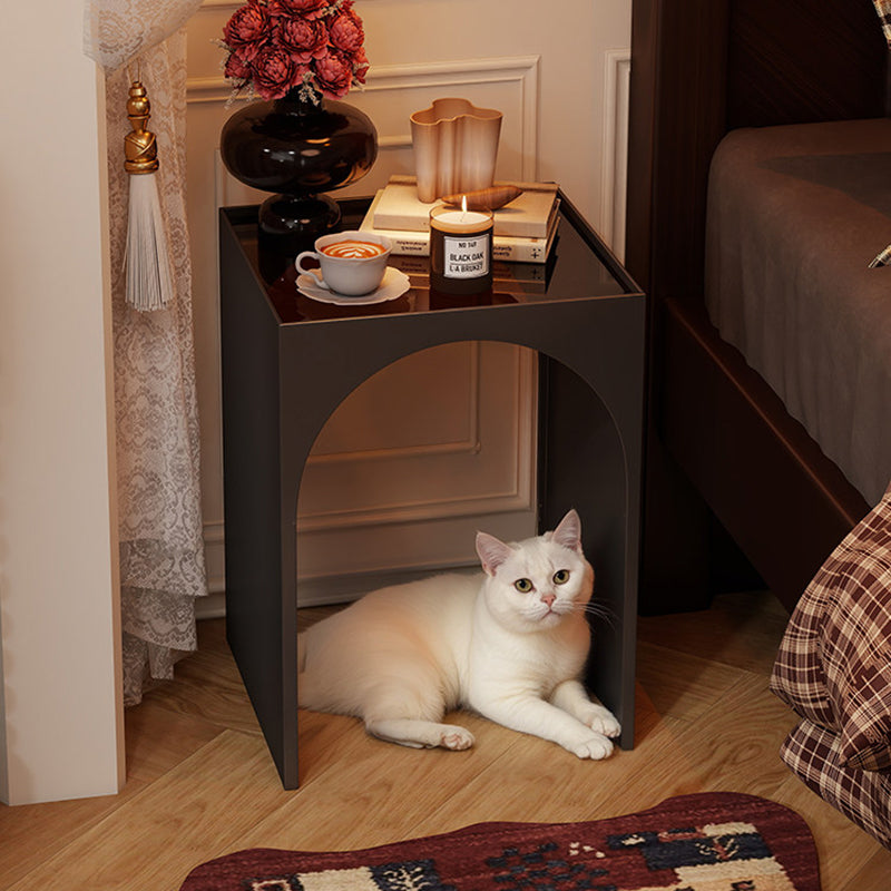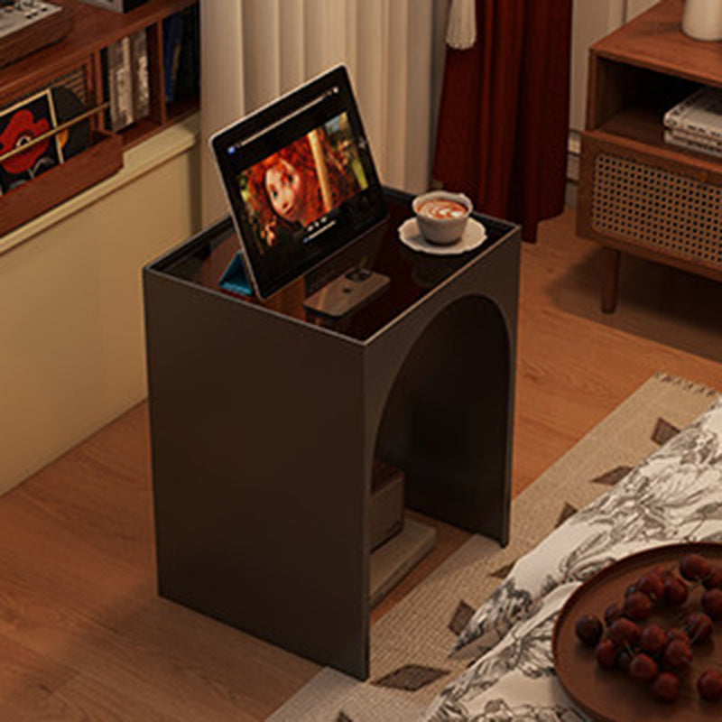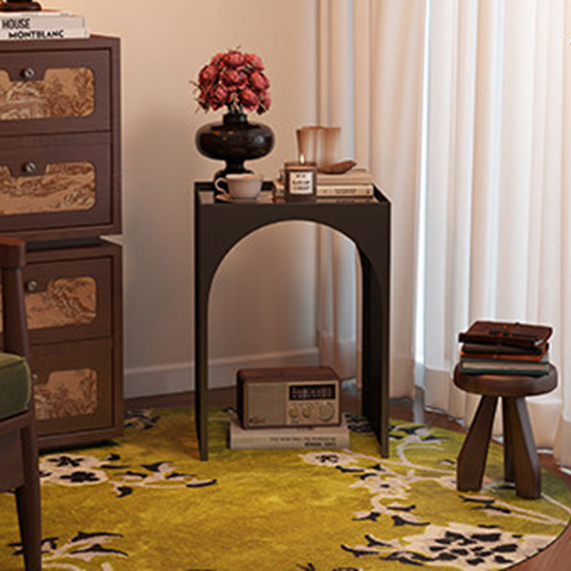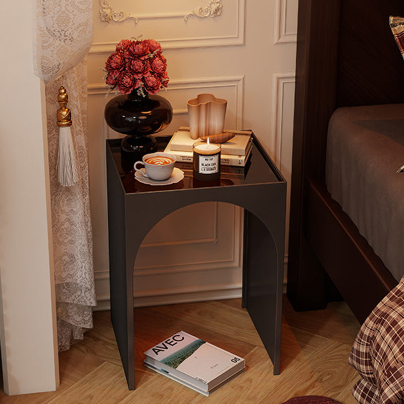 Black Contemporary Industrial Side Table features a rectangular arch design with 1-tier storage, crafted from rust-resistant anti-corrosion iron and hard, easy-to-clean tempered glass. Perfect for adding industrial charm while organizing items in living rooms and bedrooms, combining durability with sleek style.