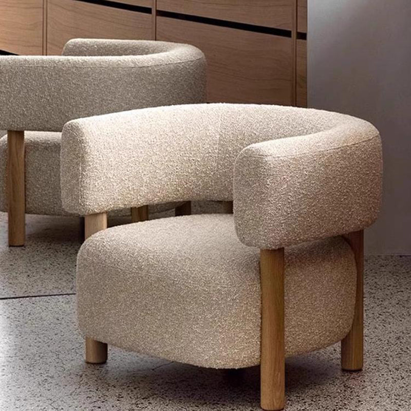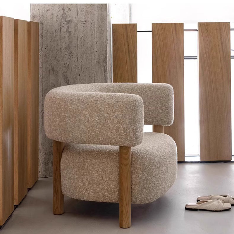 Contemporary Scandinavian Lambswool Solid Wood Curved Rounded Square Accent Chair With Armrests Backrest For Living Room