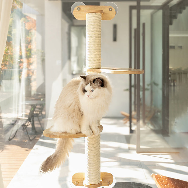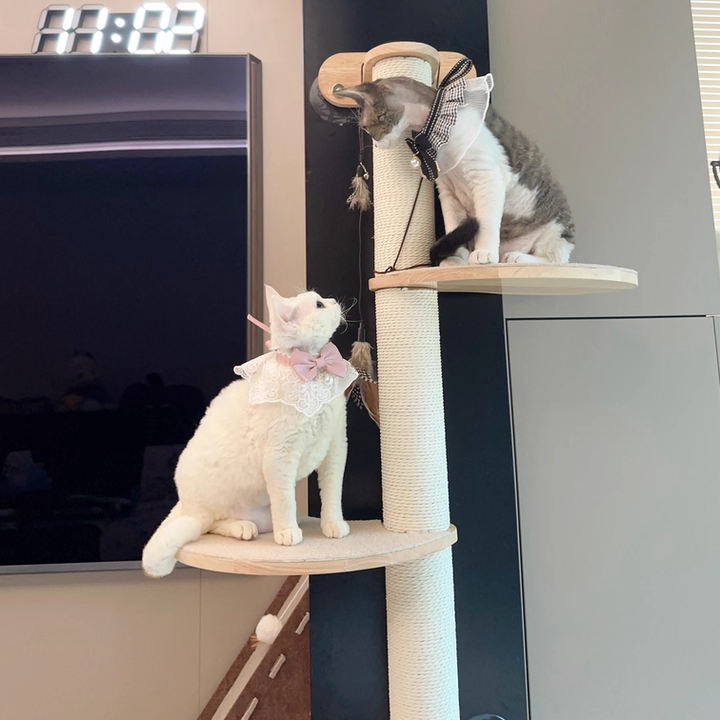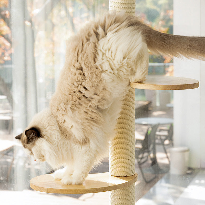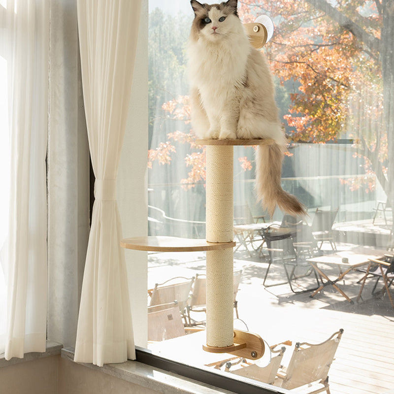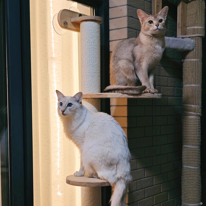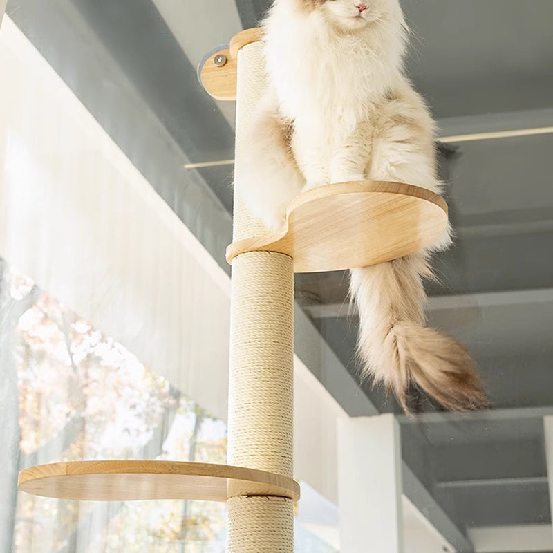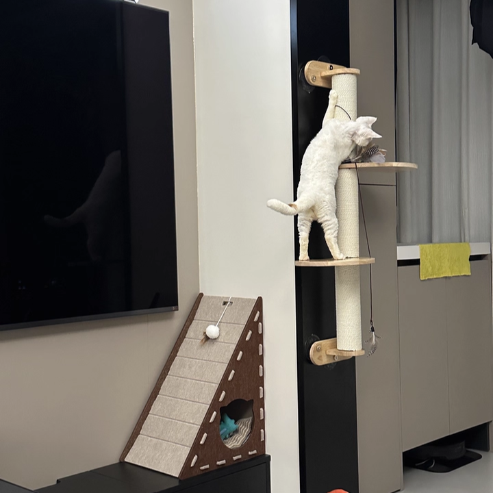 Reclaim your floor space and satisfy your cat’s primal "High-Ground" instincts with The Sky-Step, a premium 3-tier wall-mounted cat tree designed for the sophisticated modern home. Crafted with a sleek, minimalist round silhouette, this vertical playground transforms your walls into a functional piece of "Biophilic" art. Engineered from furniture-grade solid rubberwood, each platform features a 5-layer UV-coated finish that enhances the natural grain while providing an industrial-strength barrier against moisture and wear. Whether you're decorating a compact urban studio or a sprawling suburban living room, this modular system creates an exhilarating "Vertical Superhighway" for your cat without sacrificing a single inch of valuable square footage.