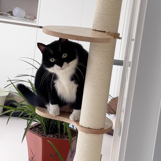Built for the active North American household, The Sky-Step is a powerhouse of structural integrity and feline-friendly ergonomics. Each level is meticulously wrapped in heavy-duty, eco-friendly paper rope, providing a rugged, high-grip texture for safe climbing and satisfying scratching that redirects claws away from your curtains. Unlike traditional particle-board wall units, our solid wood construction offers a high-load capacity and "Rock-Solid" stability, ensuring a vibration-free experience for even the most athletic jumpers. This is the premier choice for shoppers seeking luxury wall-mounted cat furniture, solid wood floating cat shelves, UV-protected pet climbers, and space-saving vertical cat gyms for large breeds.