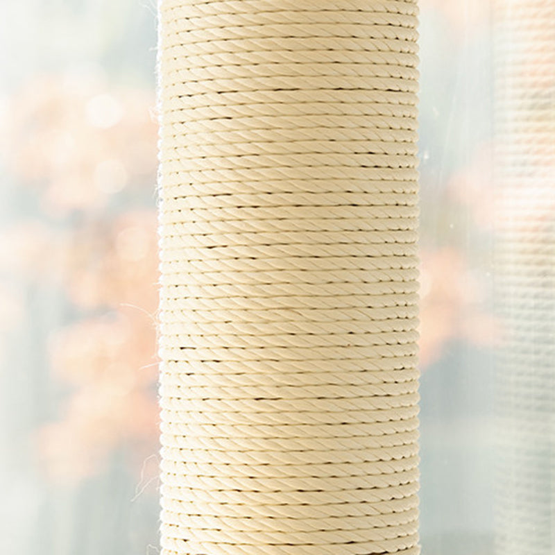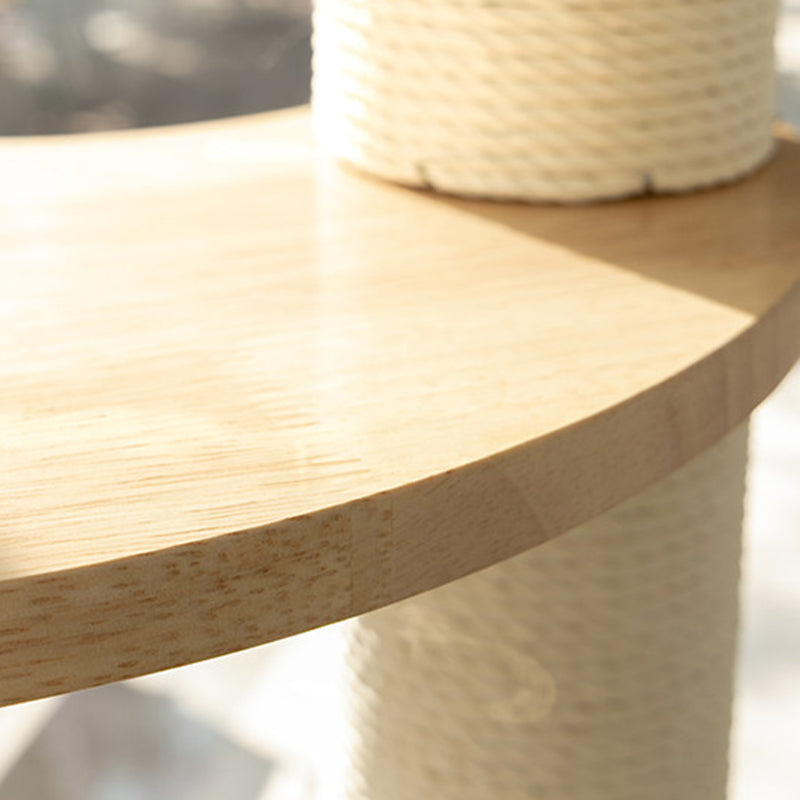 Contemporary Scandinavian Round Rubberwood Solid Wood Kraft Paper Rope Cat Tree 3-Tier For Living Room