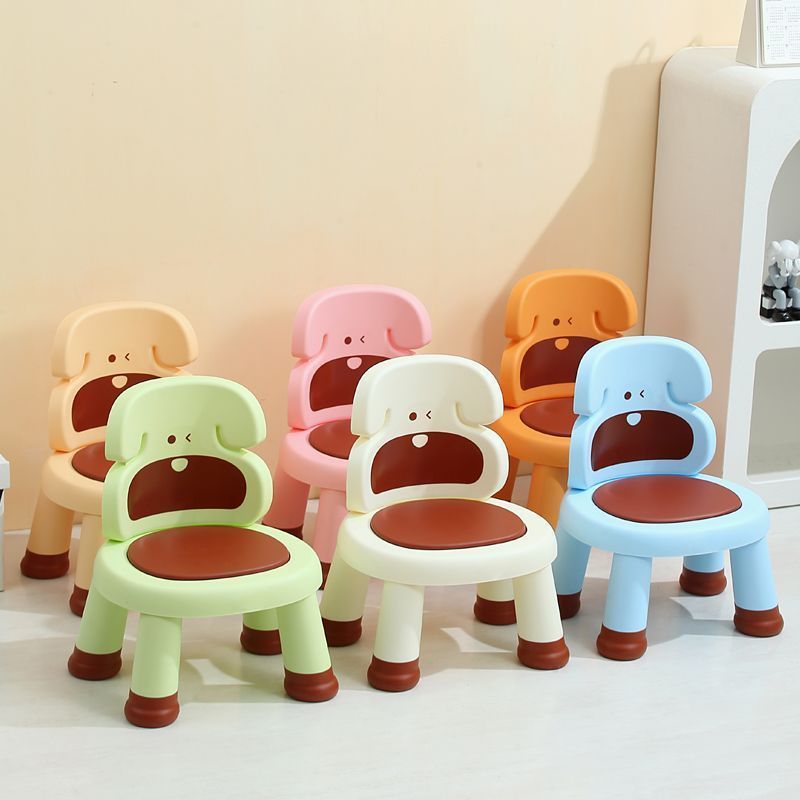 This kid-friendly cartoon dog-shaped stool features Art Deco Modern style, crafted from high-toughness PP plastic with a comfortable backrest and fun sound-making function. Available in white, green, blue, orange, pink and khaki, it’s a durable, playful seating option for living rooms and bedrooms—perfect for little ones.