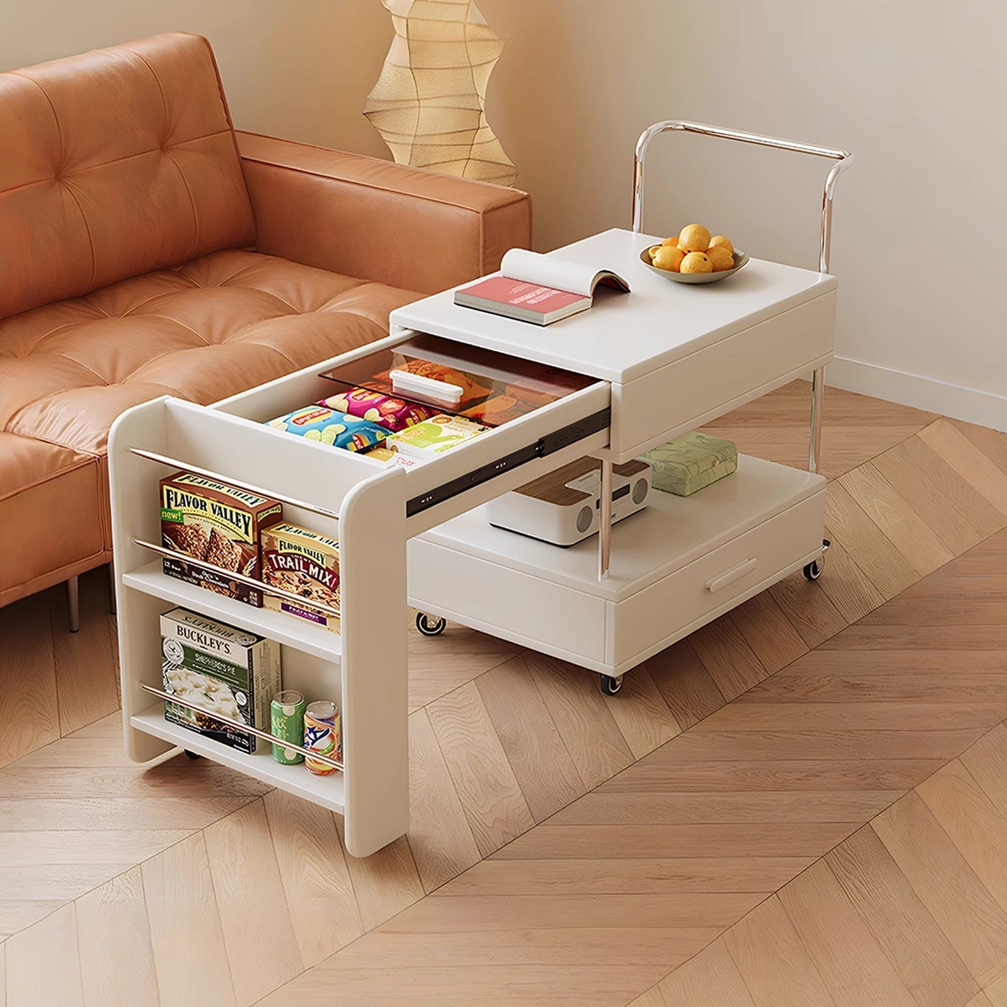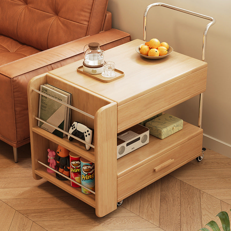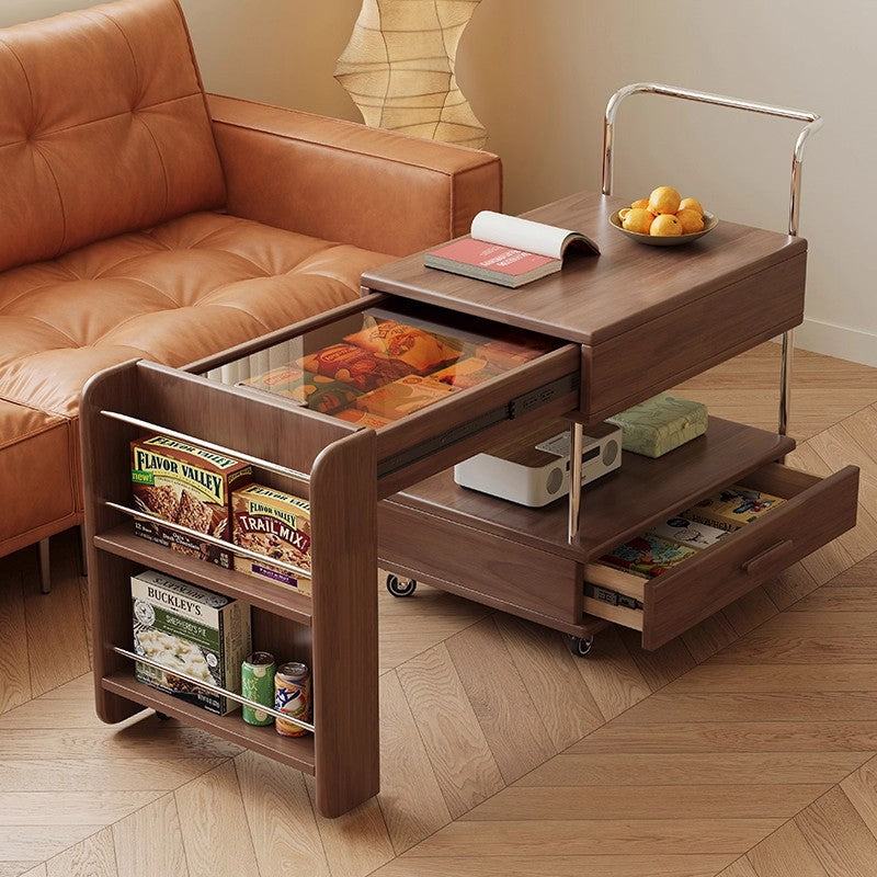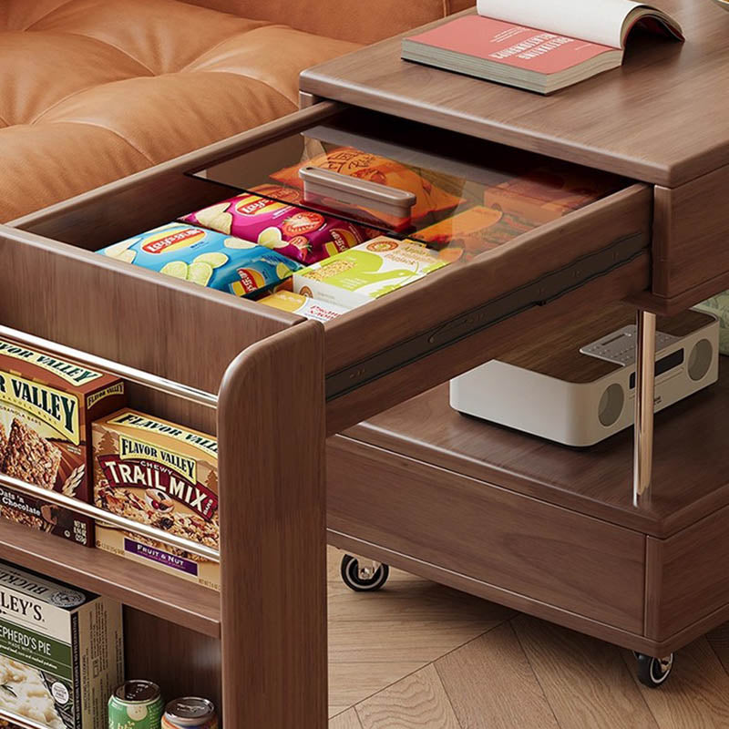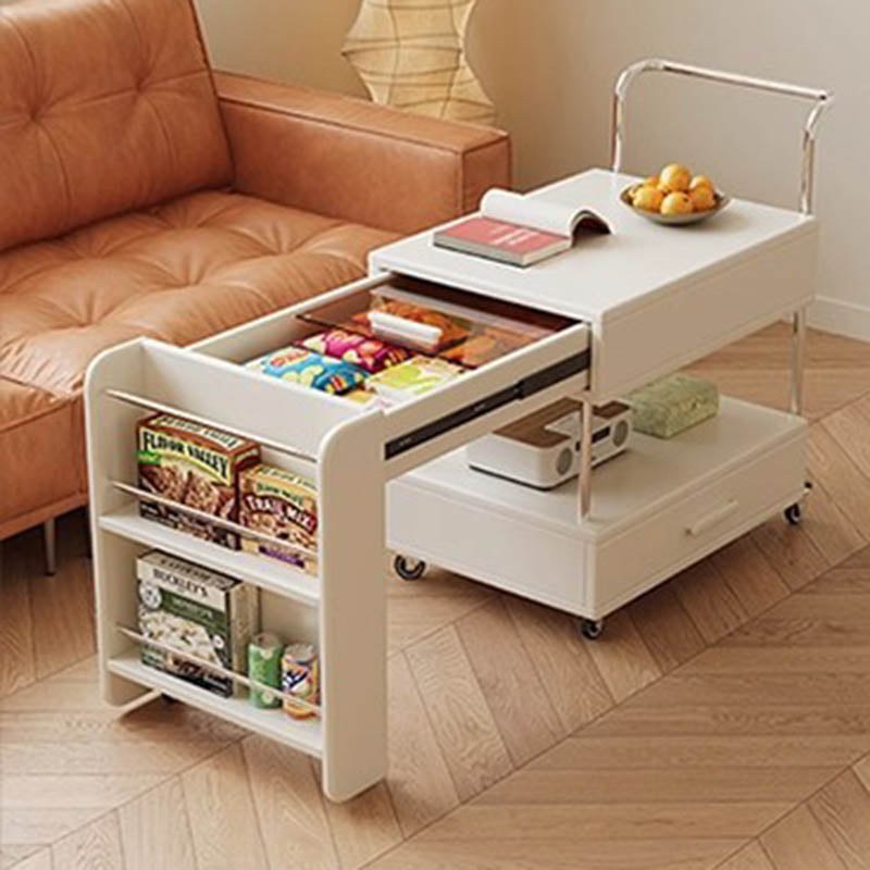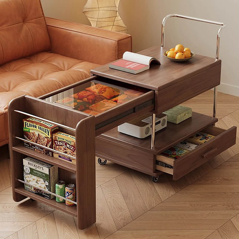 This modern solid wood side table features a rectangular extendable design with one smooth-glide drawer for hidden storage. Made from eco-friendly engineered solid wood, it's sturdy, movable, and available in white, walnut, or natural wood---perfect for living rooms and bedrooms.